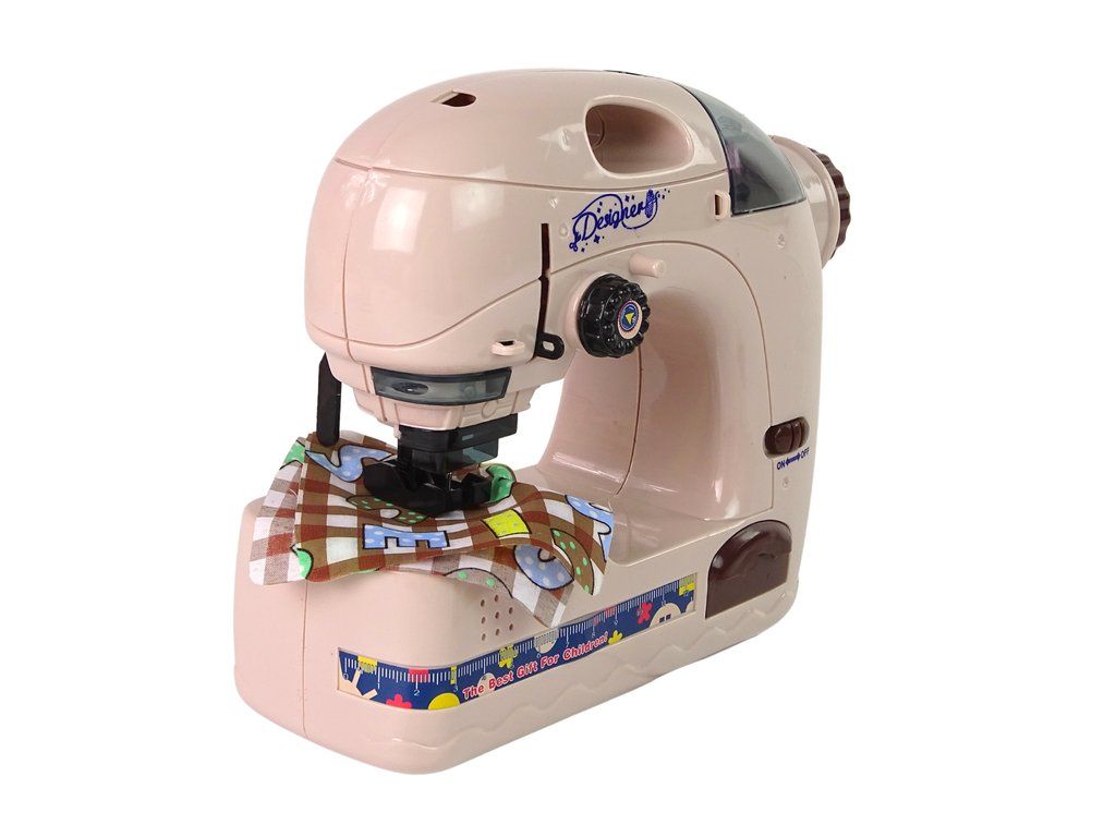 Sprevádzaný zvukmi charakteristickými pre skutočný produkt. Na prednej strane hračky je 15 cm dlhý meter, takže dieťa bude môcť ľahko odmerať kúsky materiálu správnej dĺžky. V dizajne tohto stroja nemohlo chýbať gombík ručného šitia, ktorý je umiestnený na pravej strane hračky a rukoväť.