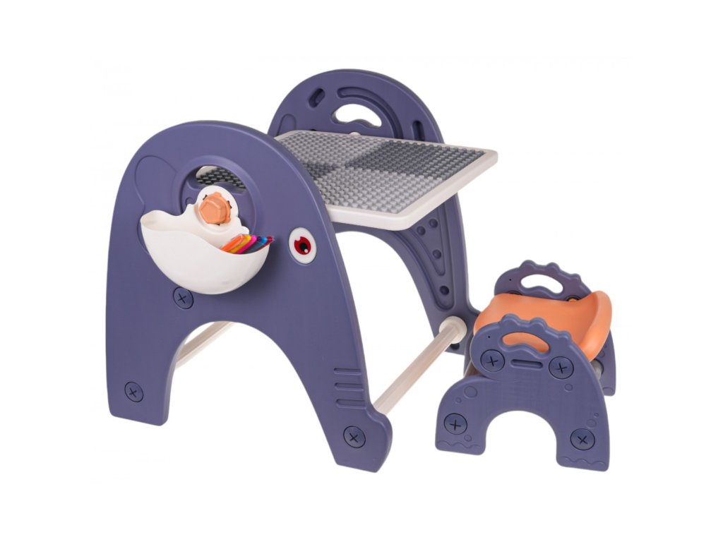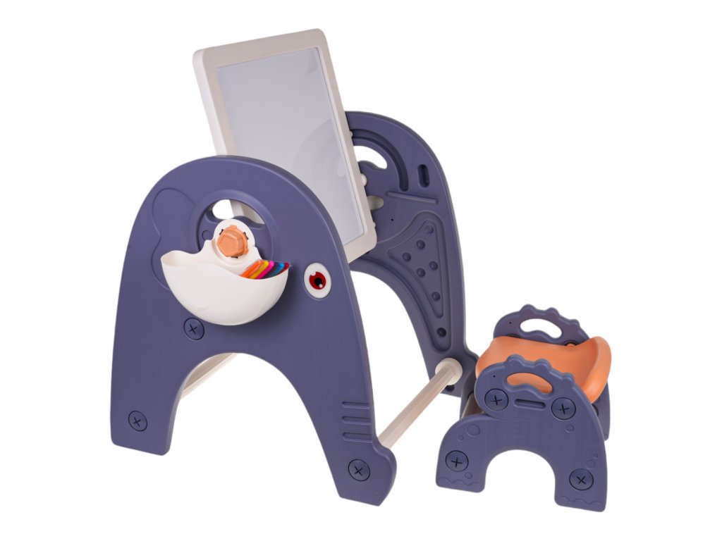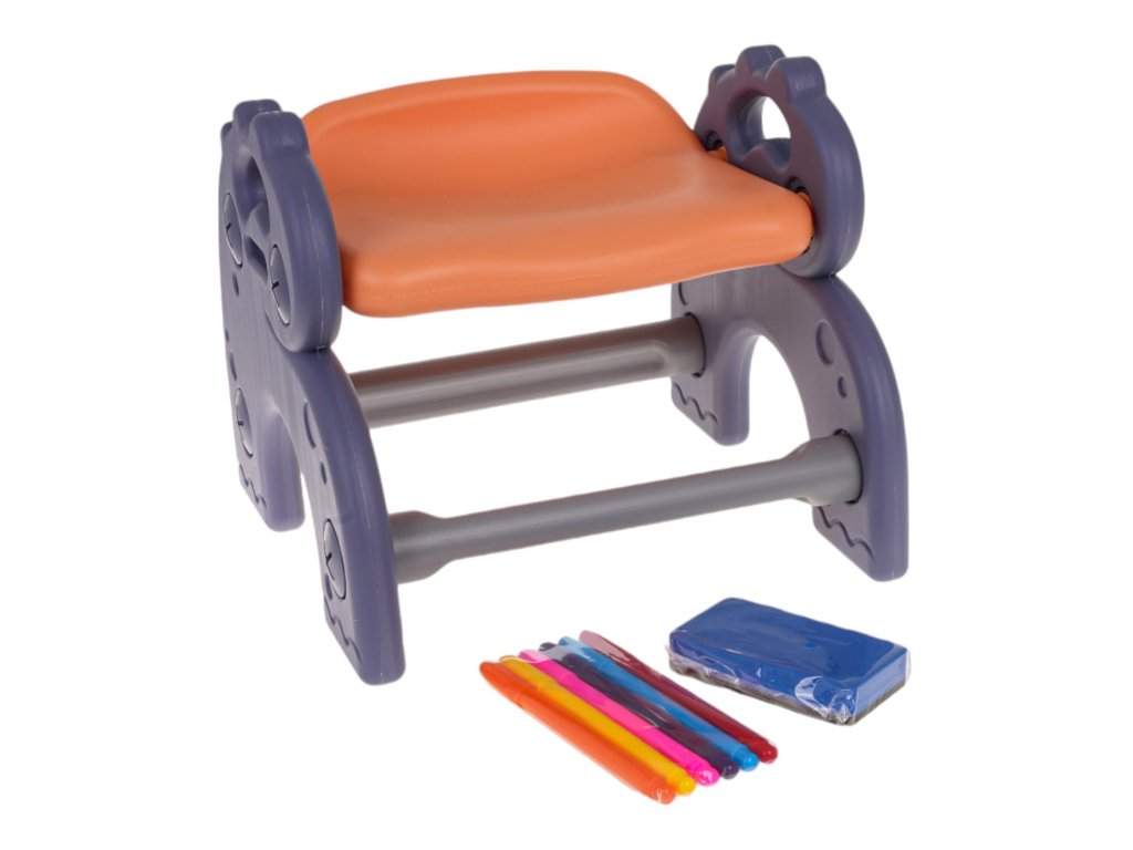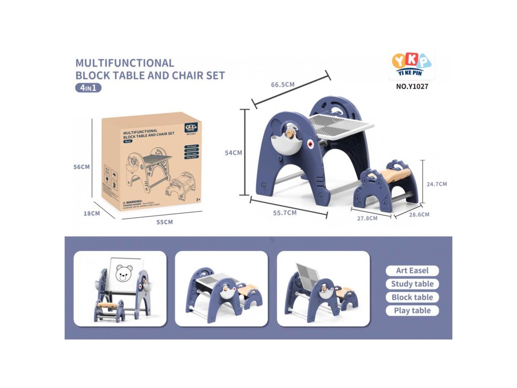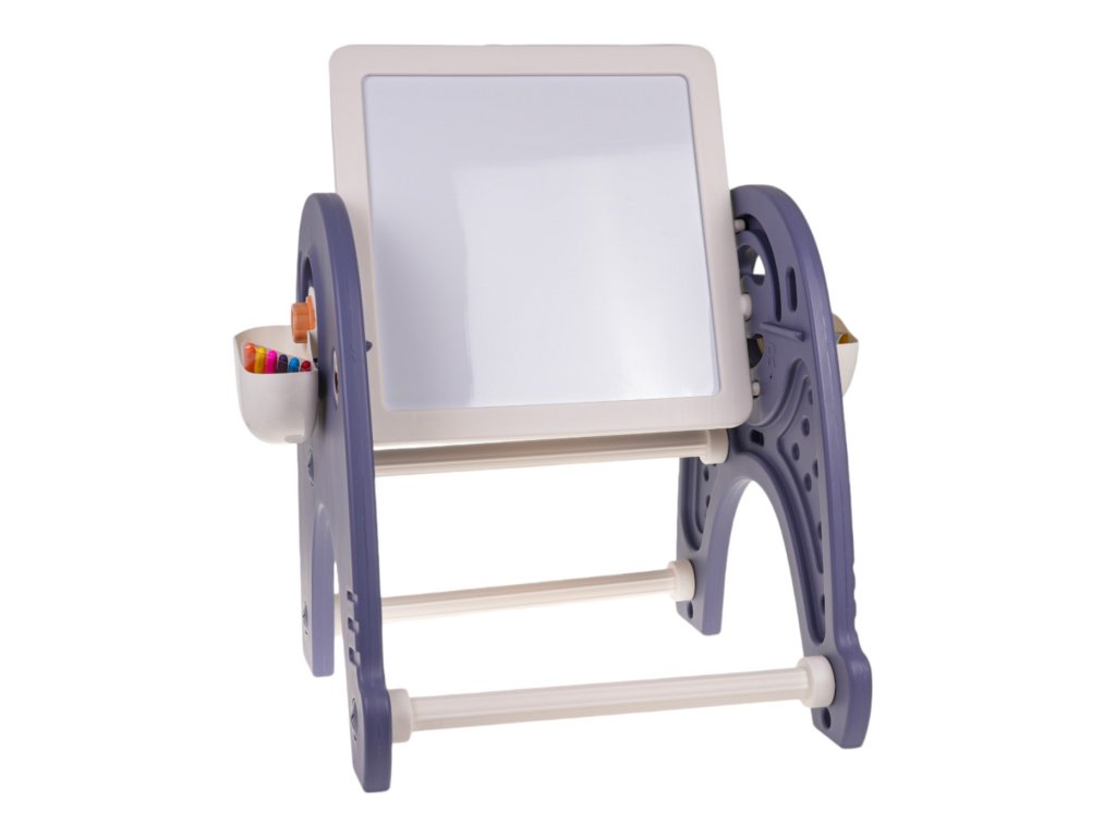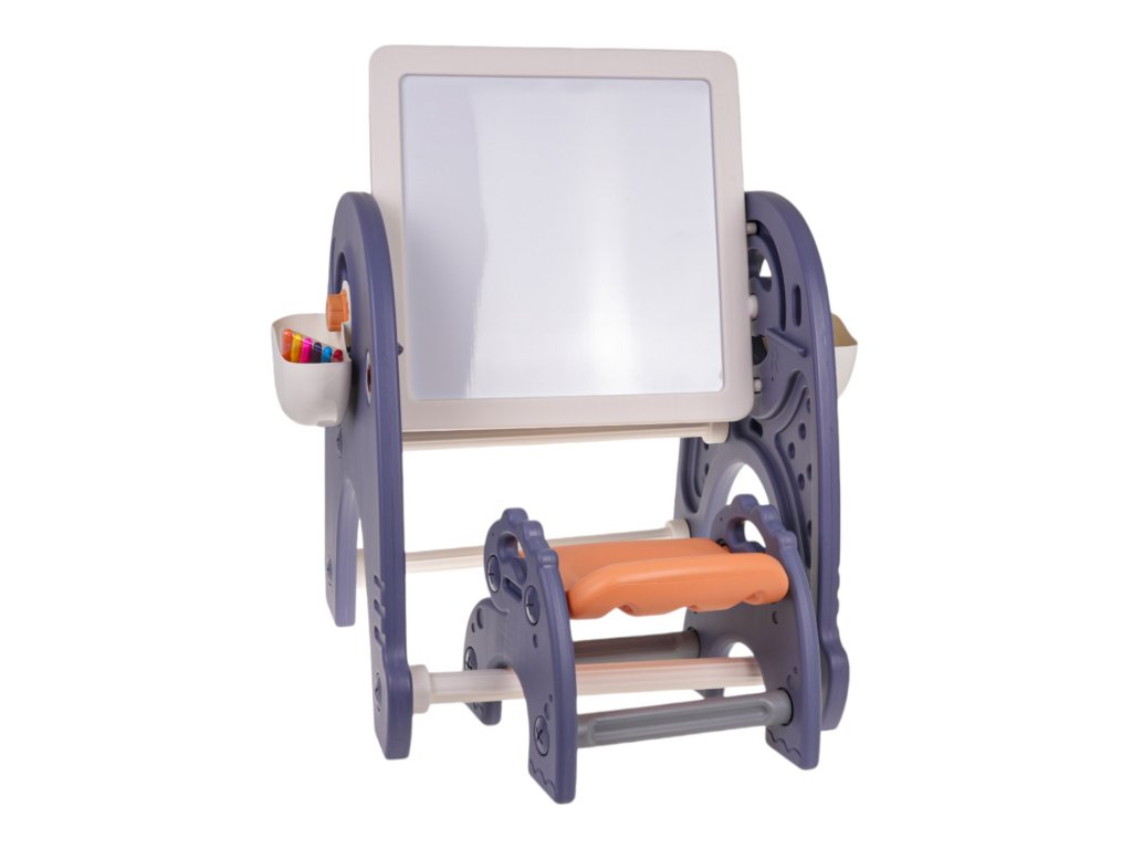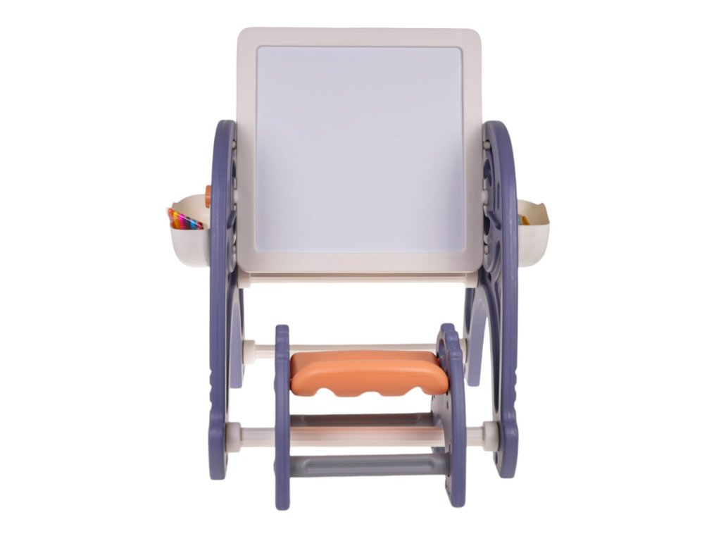 Sada 4v1 , tabuľa, stôl, podložka na skladanie kociek a stoličky pre deti od 3 rokov . Súprava je vyrobená z najkvalitnejšieho plastu, nemá ostré hrany a je stabilná. Na plastových nohách je umiestnená tabuľa, ktorú je možné nakláňať do ľubovoľného uhla a otáčať. Na jednej strane je doska na maľovanie a na druhej podložka na skladanie kociek.