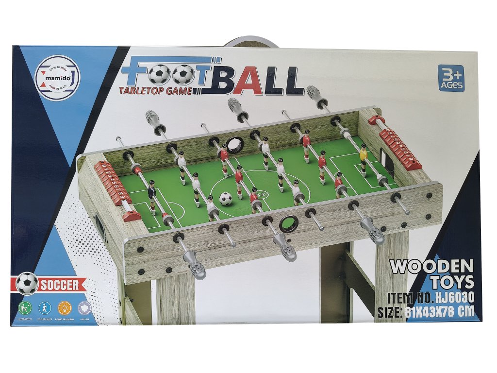 Zábavná stolná futbalová hra, ktorá prináša súťažnú atmosféru priamo domov. Ideálne pre deti aj dospelých, podporuje rýchle reakcie, koordináciu a zdravého súťaživého ducha. Konštrukcia v imitácii dreva pôsobí stabilne a efektne, rukoväte ovládacích tyčí sa držia pohodlne a hracia plocha je prehľadná s jasne vyznačenými líniami ihriska. Perfektná voľba pre rodiny, detské izby aj spoločné hranie s kamarátmi.