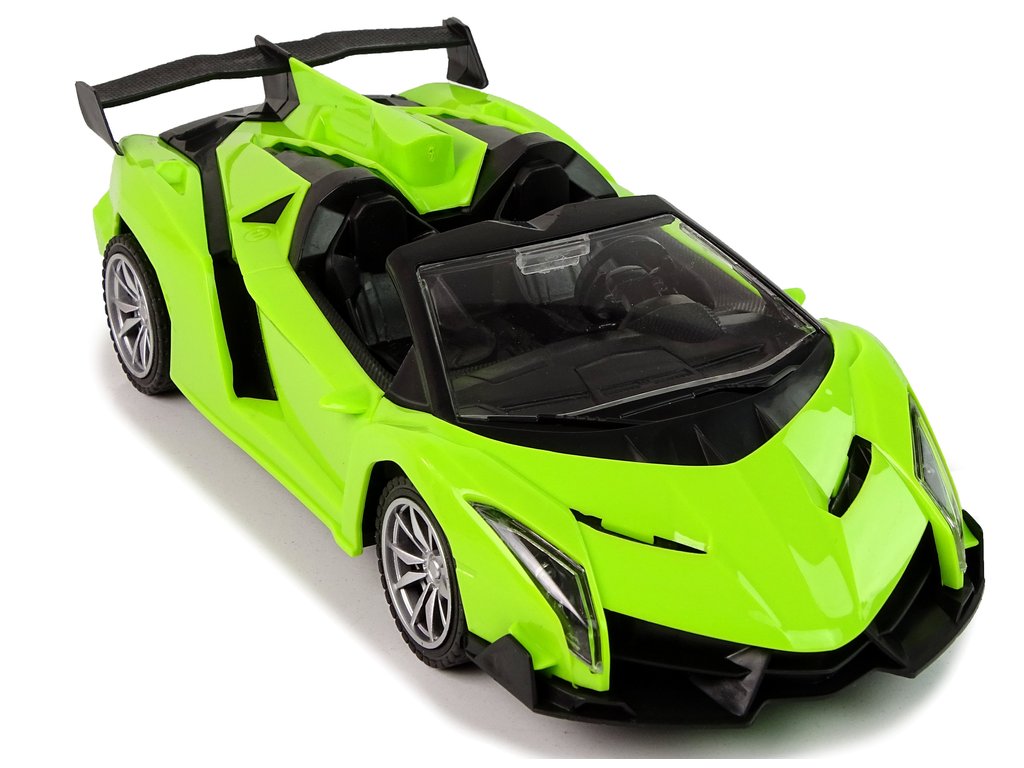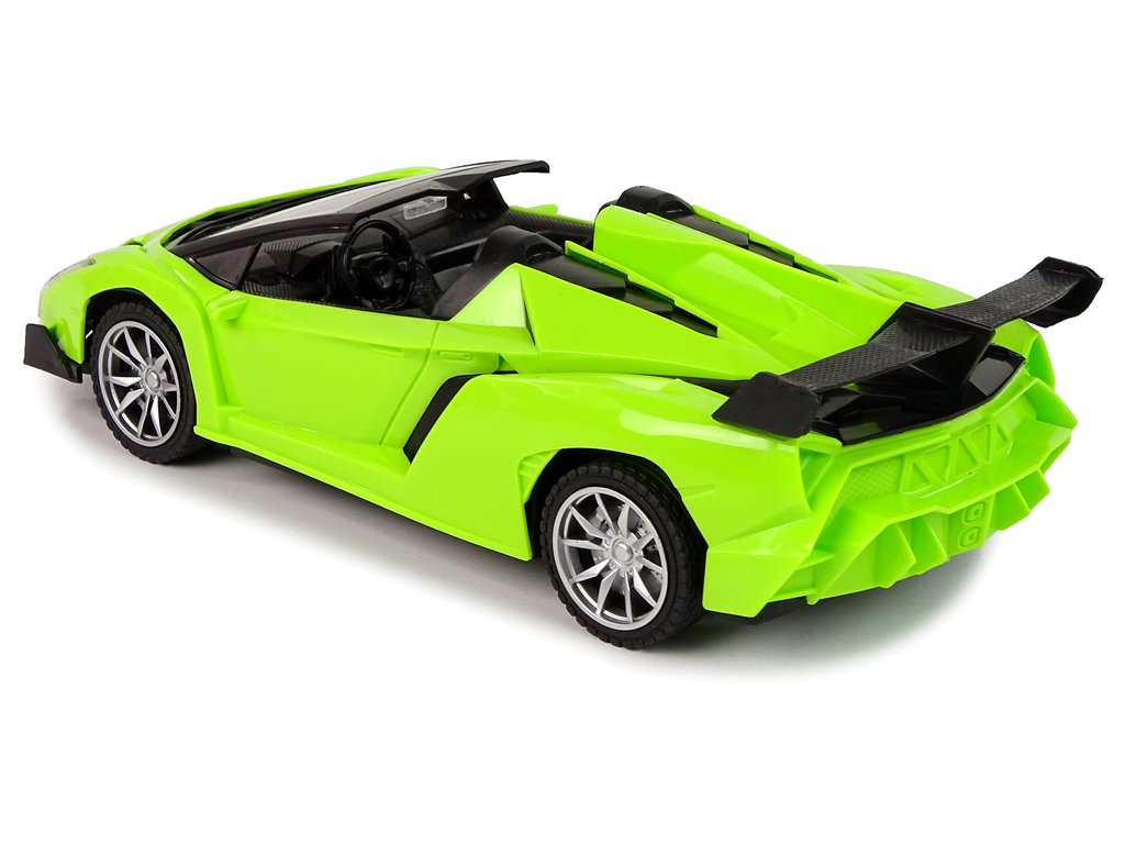 Auto má ľahkú a pevnú konštrukciu a športový dizajn so zelenou farbou karosérie. Gumové pneumatiky zaručujú priľnavosť k rôznym povrchom.