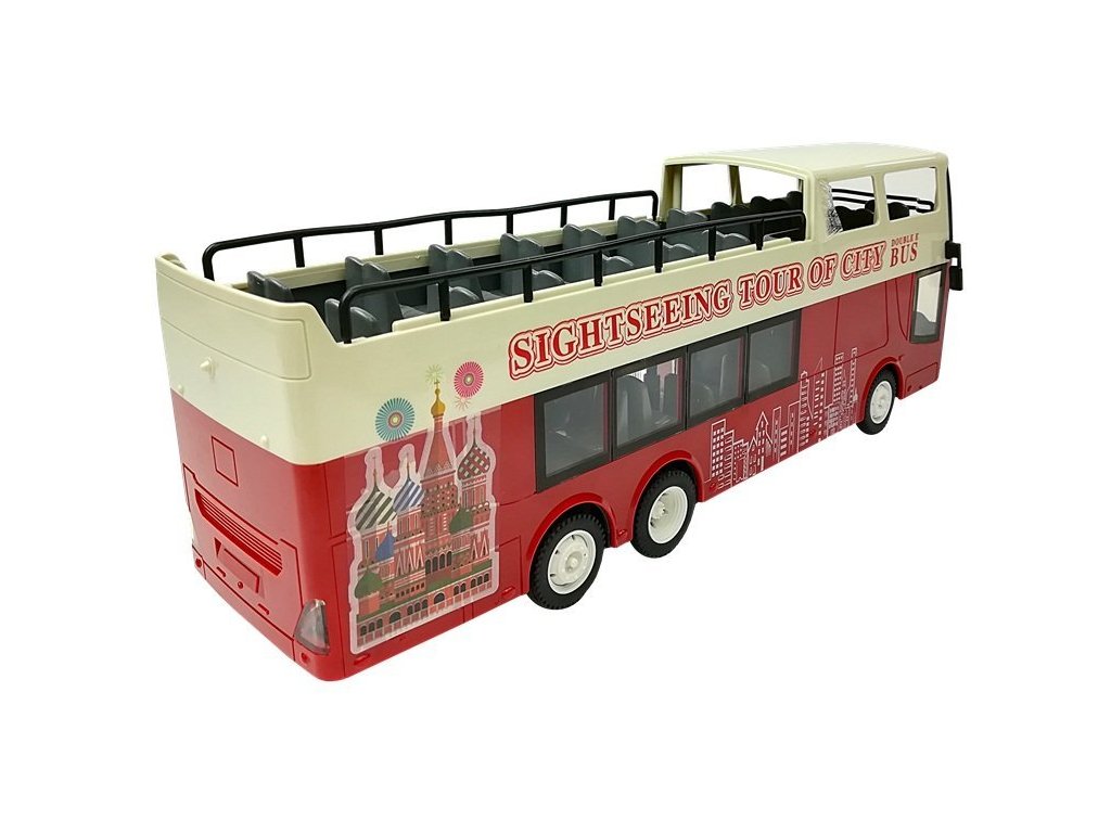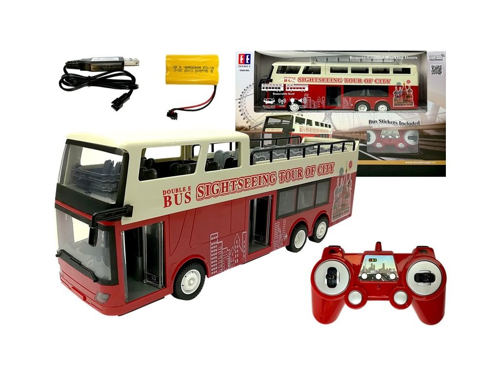 Dvojposchodový autobus určite urobí radosť každému fanúšikovi týchto vozidiel. Diaľkové ovládanie má frekvenciu 2,4 GHz, s jeho pomocou ho môže obsluha riadiť, meniť smery vpred/vzad a vpravo/vľavo. Autobus má zvukové a svetelné efekty a výhodou je, že dvere je možné otvárať pomocou ovládača. Zobrazený model je vyrobený v mierke 1:18.