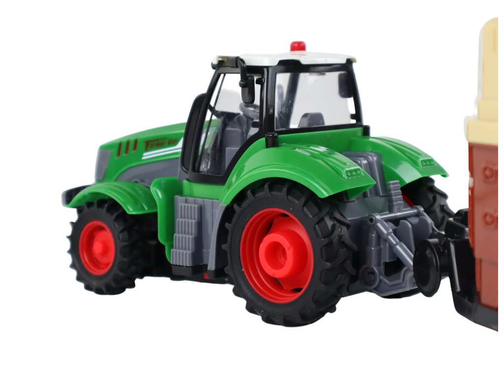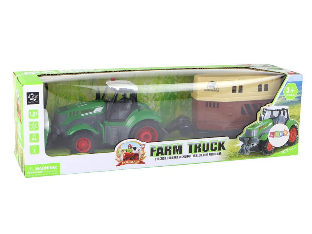 Diaľkovo ovládaný traktor RC s elektrickým autíčkom, rolou v poľnohospodárskych strojoch so prívesom a pilotom v mierke 1:24