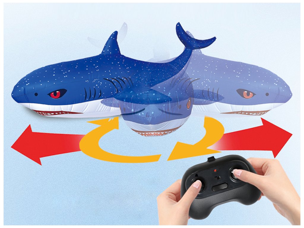 - Jednoduché ovládanie – vďaka technológii 2,4 GHz sa žralok plynule pohybuje dopredu, dozadu a otáča sa o 360°.