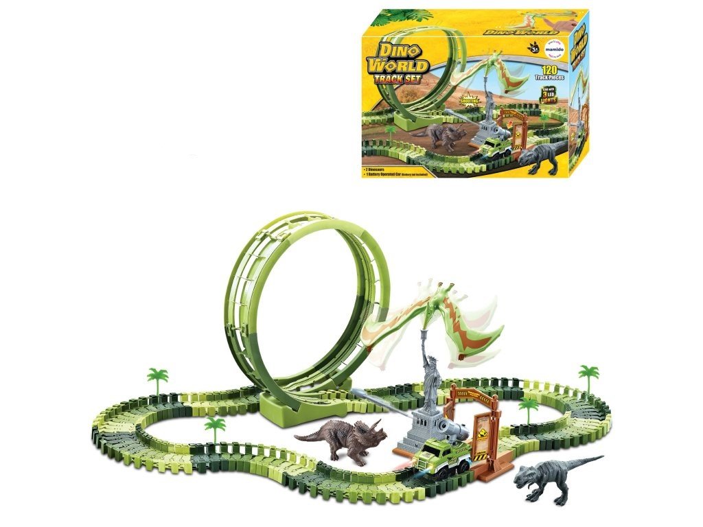 Dinosauria dráha so slučkou, figúrkami a autíčkom 120 dielov MT1523