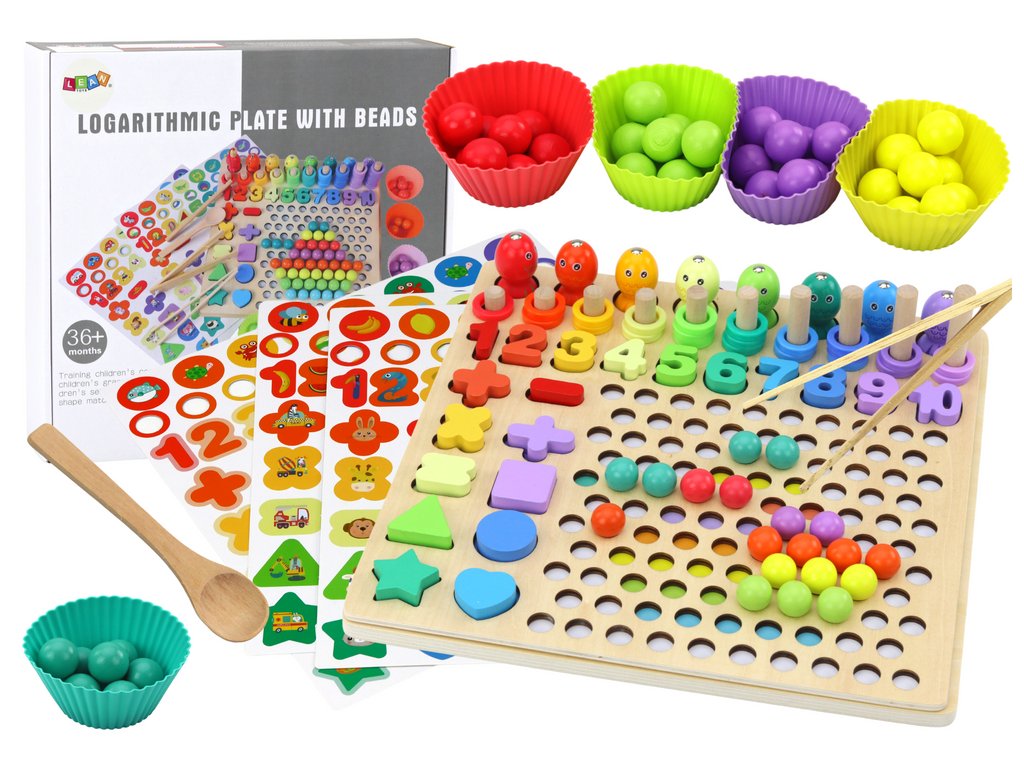 Hrou s chytaním rybičiek sa dieťa učí prispôsobovaniu detailov a zároveň si zdokonaľuje koordináciu oko-ruka. Pri umiestňovaní korálikov alebo krúžkov na tyčky sa dieťa učí hodnotu čísel a počíta do 10, čo môže byť tiež chápané ako forma počítadla. Navyše, skladanie priestorových tvarov rozvíja schopnosti vnímania a priestorového myslenia.