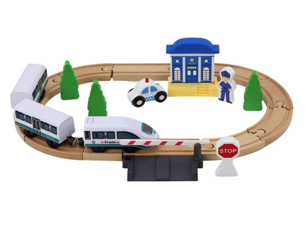 Drevená vláčikodráha s mostom a policajnými doplnkami 3,2m