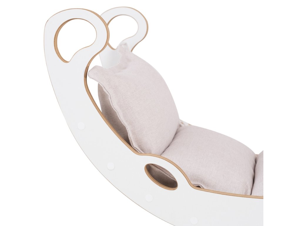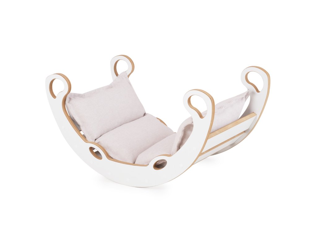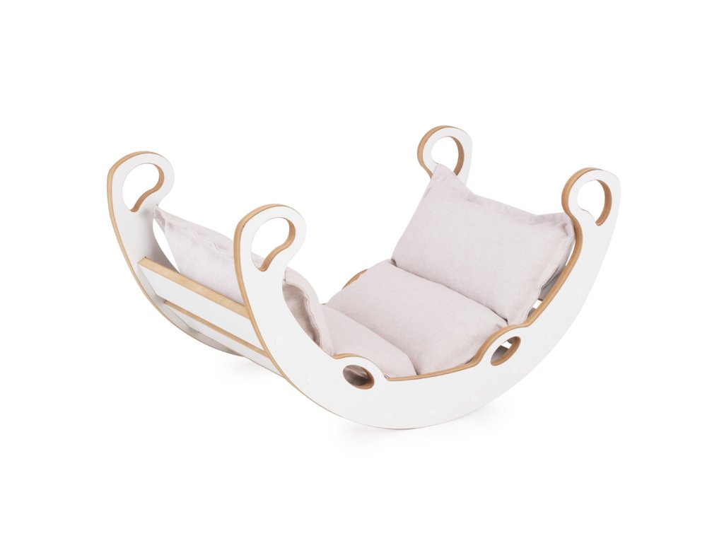 Drevené hojdadlo Mini 2v1 (XS) s vankúšom (svetlo béžové / biele)