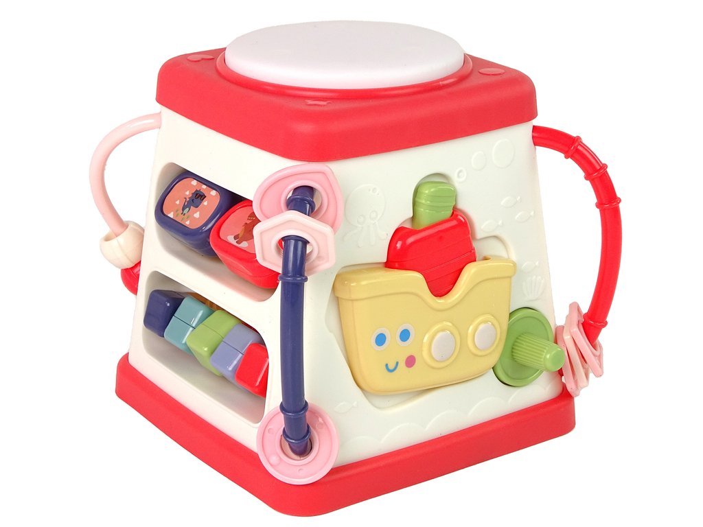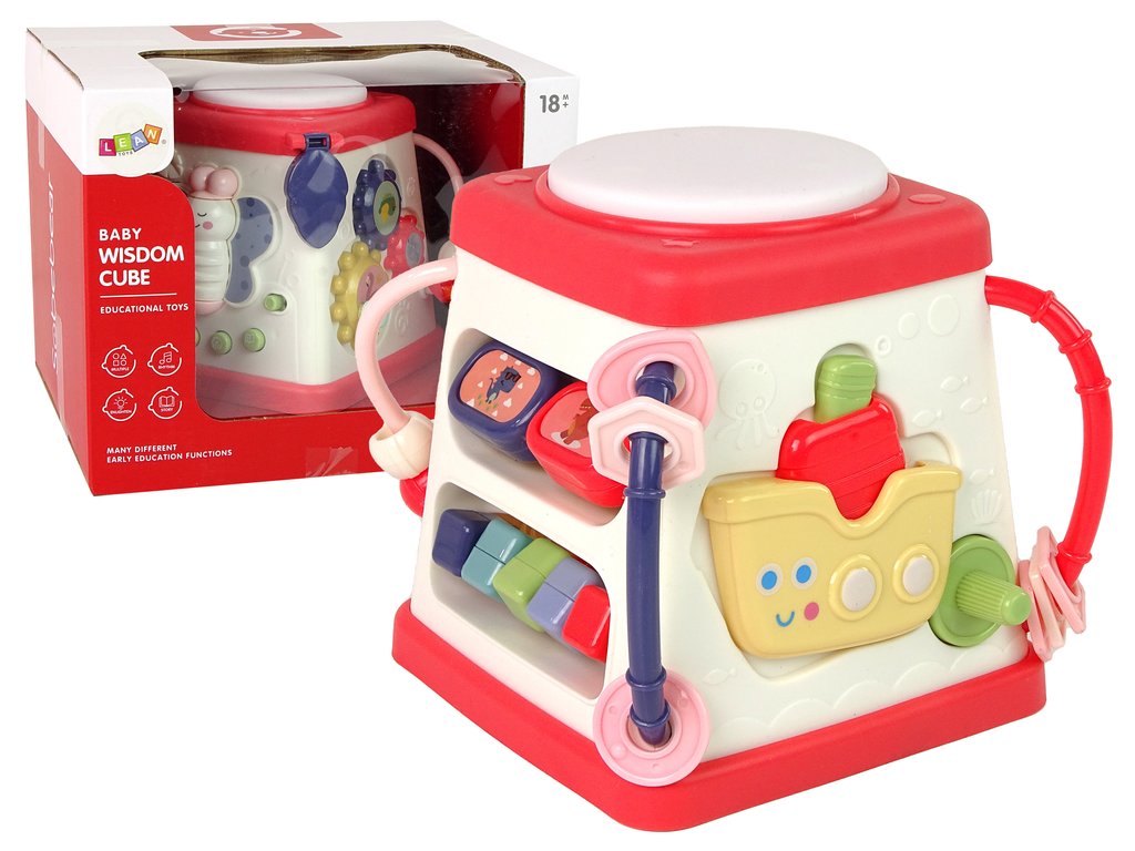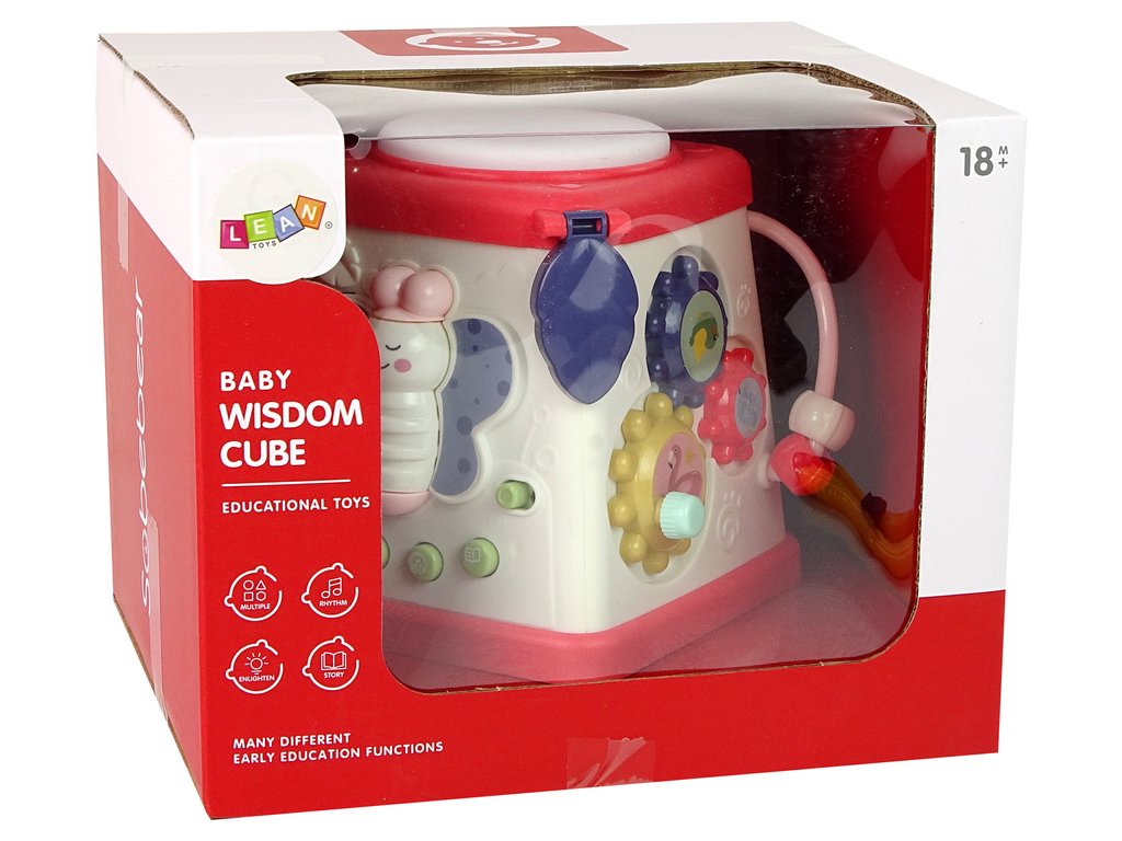 Farebná interaktívna kocka sa skladá z niekoľkých hračiek spojených do tvaru kocky, ktorá svojimi priateľskými farbami povzbudí k hre každé batoľa. Každá stena kocky má iné, prekvapivé funkcie. Zvukové a svetelné funkcie budú stimulovať jeho sluch a zrak. Pestré farby a dizajn upútajú pozornosť batoľaťa, úsmev z tváre vášho dieťaťa nikdy nezmizne.