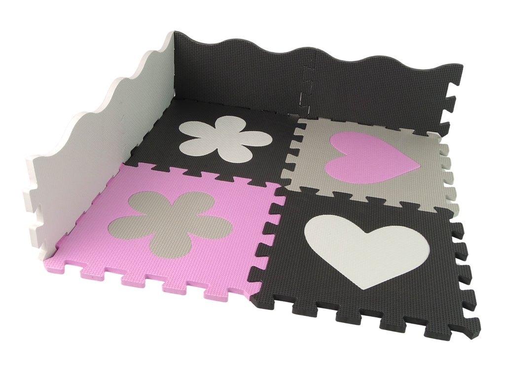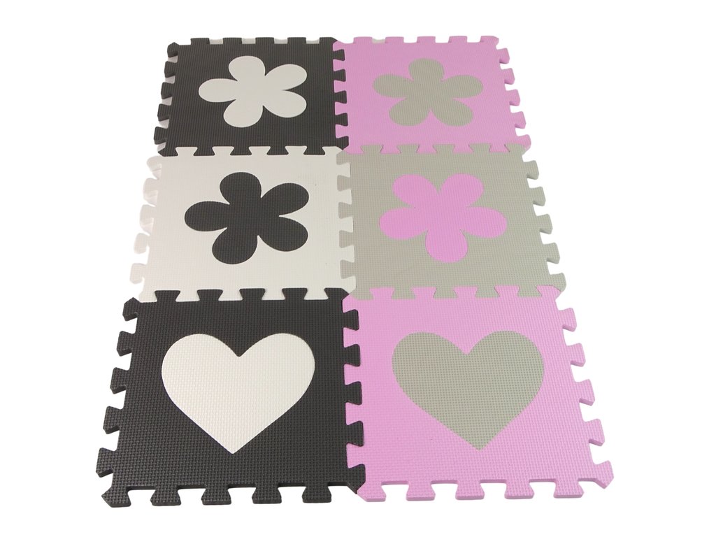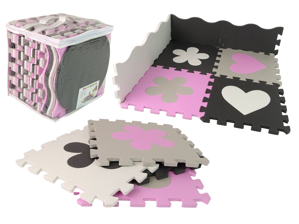 Pre staršie deti bude táto podložka výzvou. Dieťa môže tvoriť rôzne tvary, ako štvorec alebo trojuholník, čím rozvíja schopnosť logického myslenia, predstavivosť a kreativitu. Puzzle majú vyberateľné stredové tvary, ako je srdiečko alebo kvetinka, čo môže byť využité aj ako hra na priraďovanie tvarov.