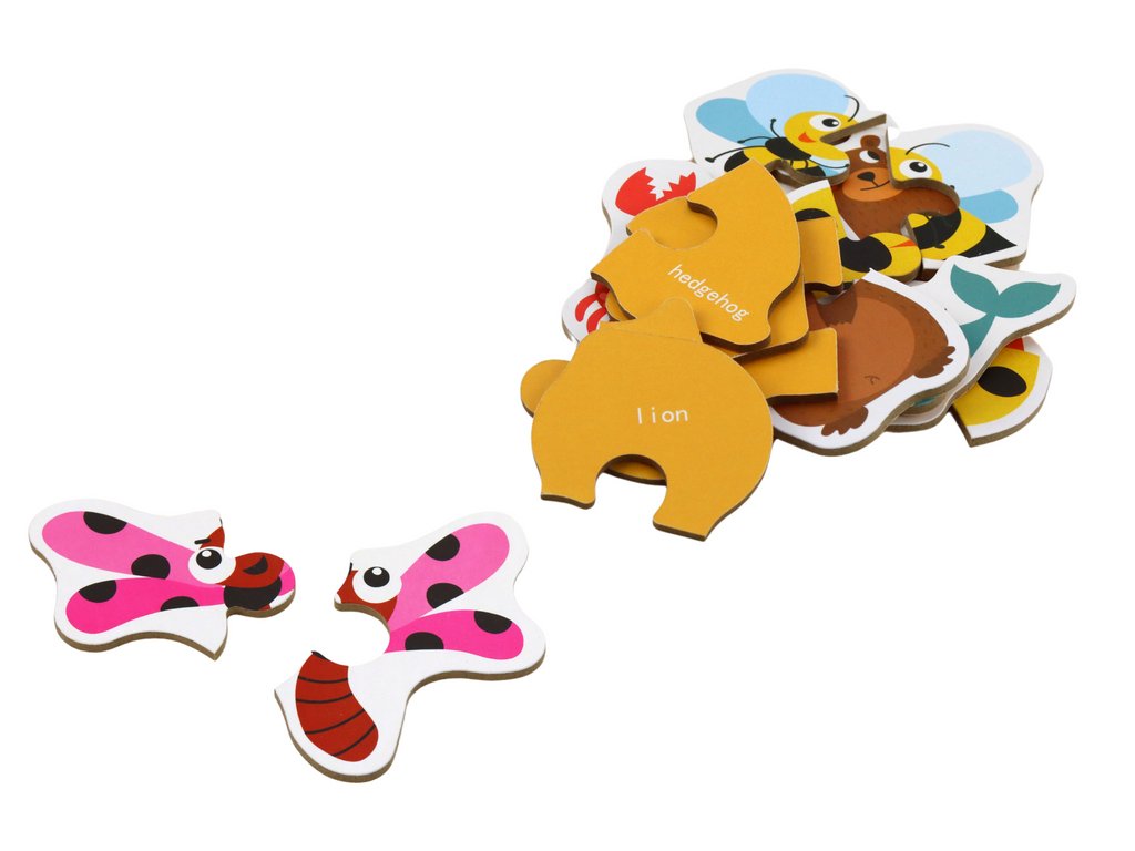 Ale to nie je všetko! Puzzle majú pridanú edukačnú funkciu – na zadnej strane sa nachádza názov zvieratka v angličtine. Deti sa tak môžu nielen učiť skladať puzzle, ale taktiež spoznávať názvy rôznych zvieratiek v cudzom jazyku. To je skvelý spôsob, ako začať s učením jazyka od útleho veku a rozširovať slovnú zásobu zábavným a interaktívnym spôsobom.
