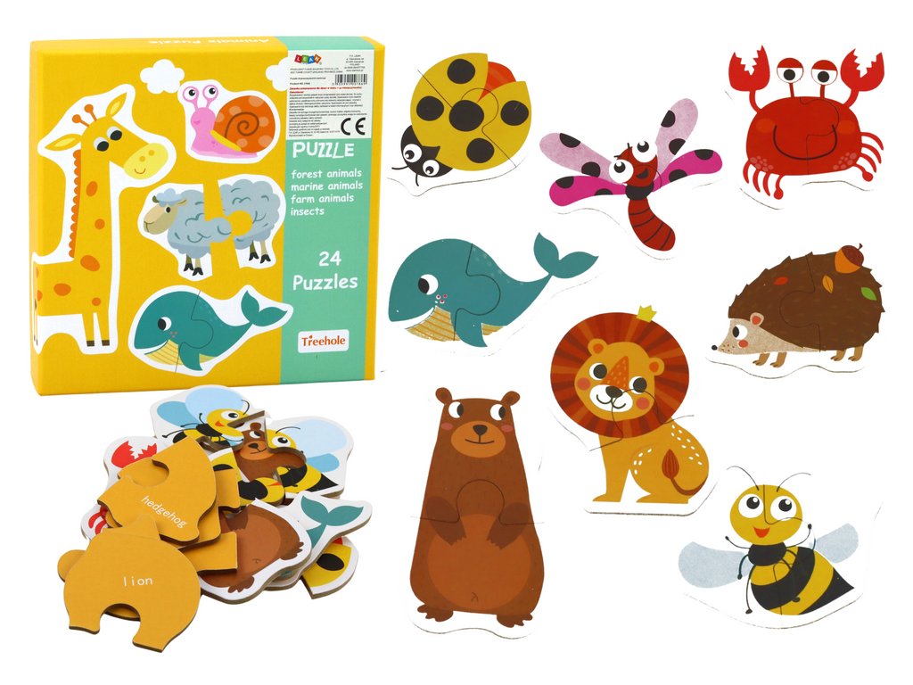 Puzzle sú skutočne výnimočné - sada obsahuje 24 rôznych zvieratiek, z ktorých každé je rozdelené na dva dieliky. Úlohou dieťaťa je správne zostaviť dieliky tak, aby vznikol kompletný obrázok zvieratka. To nie je len skvelá zábava, ale aj vynikajúci spôsob, ako rozvíjať logické myslenie a koordináciu oka a ruky.