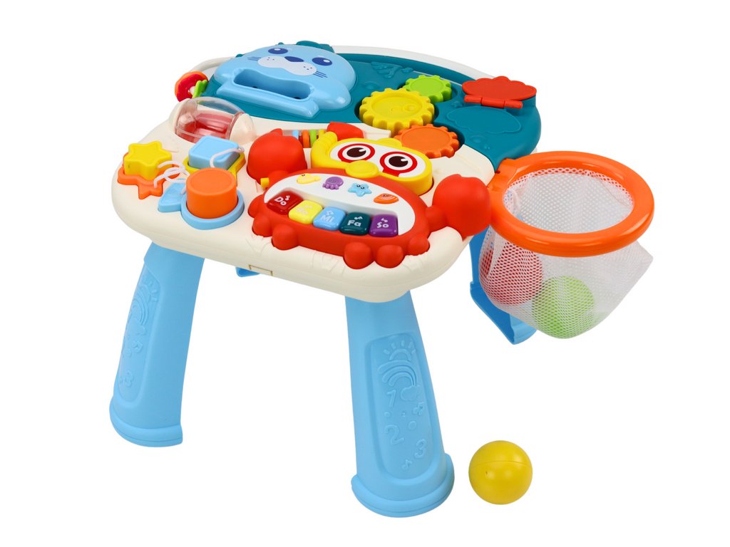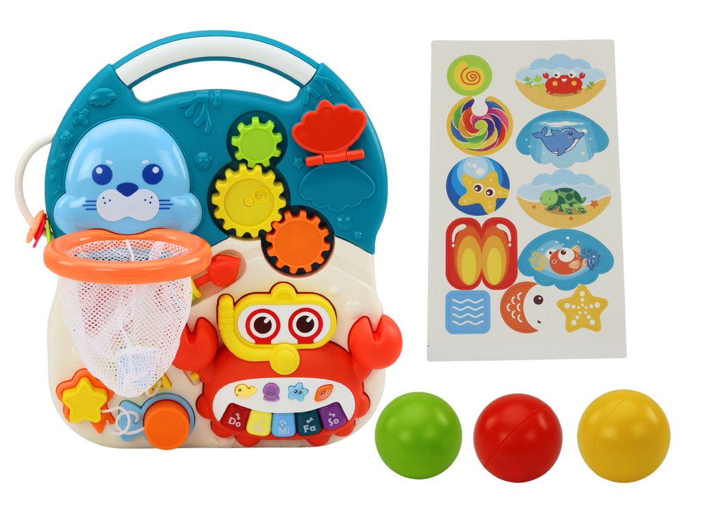 Hlavným interaktívnym prvkom je krab, ktorý hrá a svieti, poskytuje dieťaťu zábavu a stimuláciu zmyslov. Na brušku kraba sa nachádza klávesnica DO RE MI FA SO a súčasťou sady sú štyri morské zvieratká, ktoré hrajú veselé melódie, čo rozvíja hudobné a sluchové zručnosti dieťaťa.