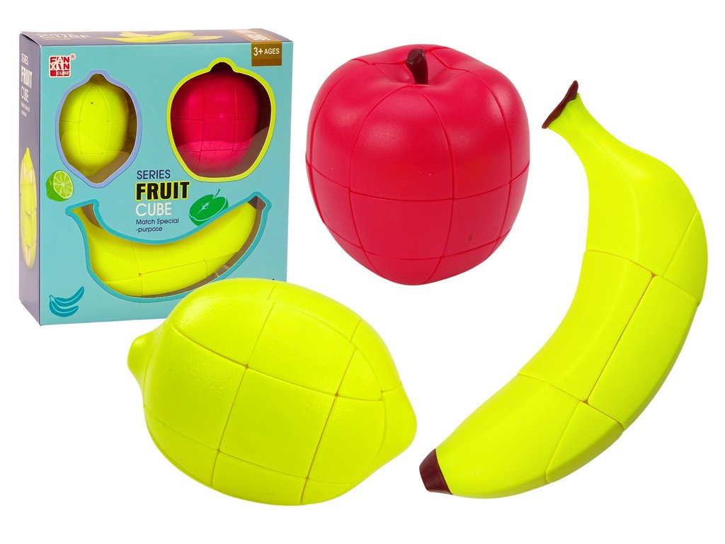 Sada edukatívnych skladačiek je skvelým návrhom pre malých prieskumníkov, ktorí radi objavujú svet pomocou hry. V sade nájdeme tri populárne ovocie: banán, jablko a citrón, pričom každé z nich má svoju jedinečnú vlastnosť – sú rozdelené na spojené kúsky.
