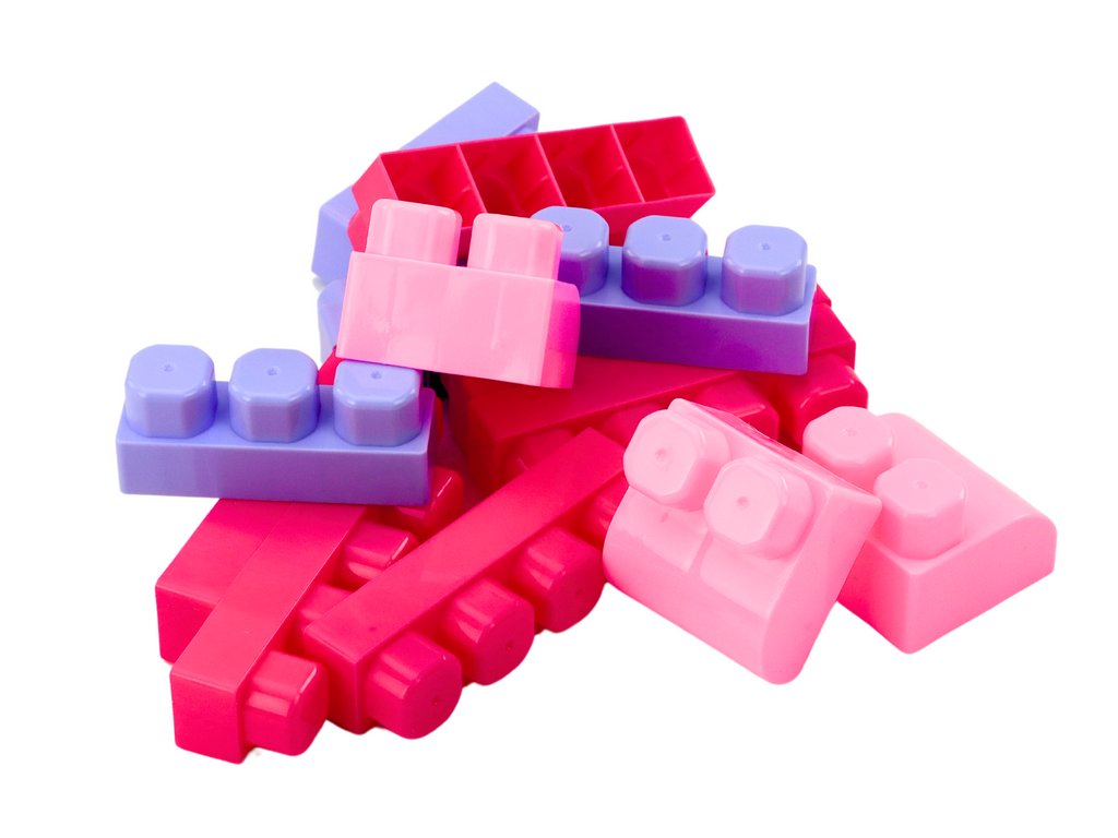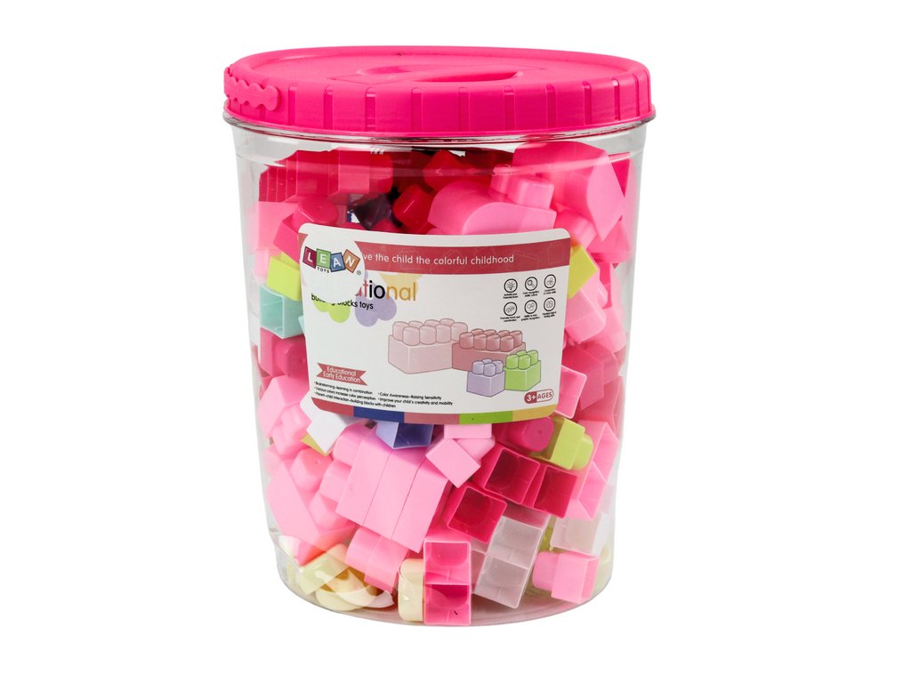 Edukatívne stavebné kocky vo vedre veľké ružové sada 160 dielov