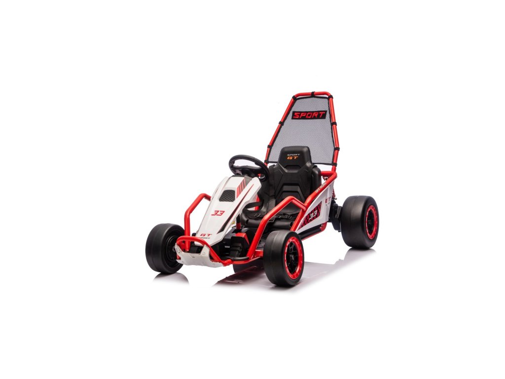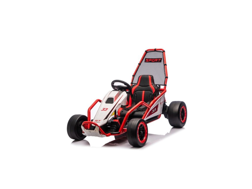 Motokára je vybavená prednými EVA kolesami pre hladkú jazdu, zatiaľ čo zadné plastové kolesá umožňujú jednoduché driftovanie. Samozrejmosťou sú nastaviteľné zadné tlmiče, plynulý rozjazd a bezpečnostné pásy pre väčšiu istotu počas jazdy. Všetko dopĺňa moderný audio panel s Bluetooth a MP3 prehrávačom.