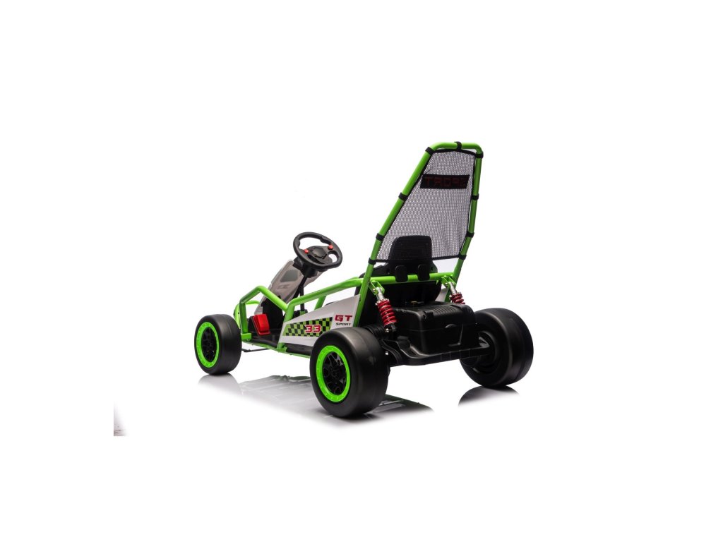 Motokára je vybavená prednými EVA kolesami pre hladkú jazdu, zatiaľ čo zadné plastové kolesá umožňujú jednoduché driftovanie. Samozrejmosťou sú nastaviteľné zadné tlmiče, plynulý rozjazd a bezpečnostné pásy pre väčšiu istotu počas jazdy. Všetko dopĺňa moderný audio panel s Bluetooth a MP3 prehrávačom.
