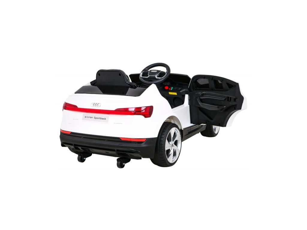 Elektrické autíčko Audi E-Tron Sportback má štyri motory s výkonom 2 5W, to znamená, že autíčko má pohon 4x4. Výhodou autíčka je, že má variabilný pohon, to znamená, že môžete prepínať medzi pohonom dvoch a štyroch kolies. O pohodlnú jazdu sa postarajú penové EVA kolesá a sedačka z ekologickej kože. Dieťaťu jazdu určite spríjemní hudobný panel s MP3, FM rádiom , Bluetooth, vstupmi pre SD kartu, USB a AUX. Nosnosť autíčka je 25 kg . Autíčko má predné a zadné LED osvetlenie, otváracie dvere a zadné tlmiče nárazu.