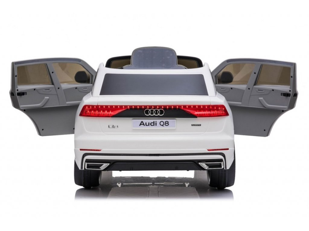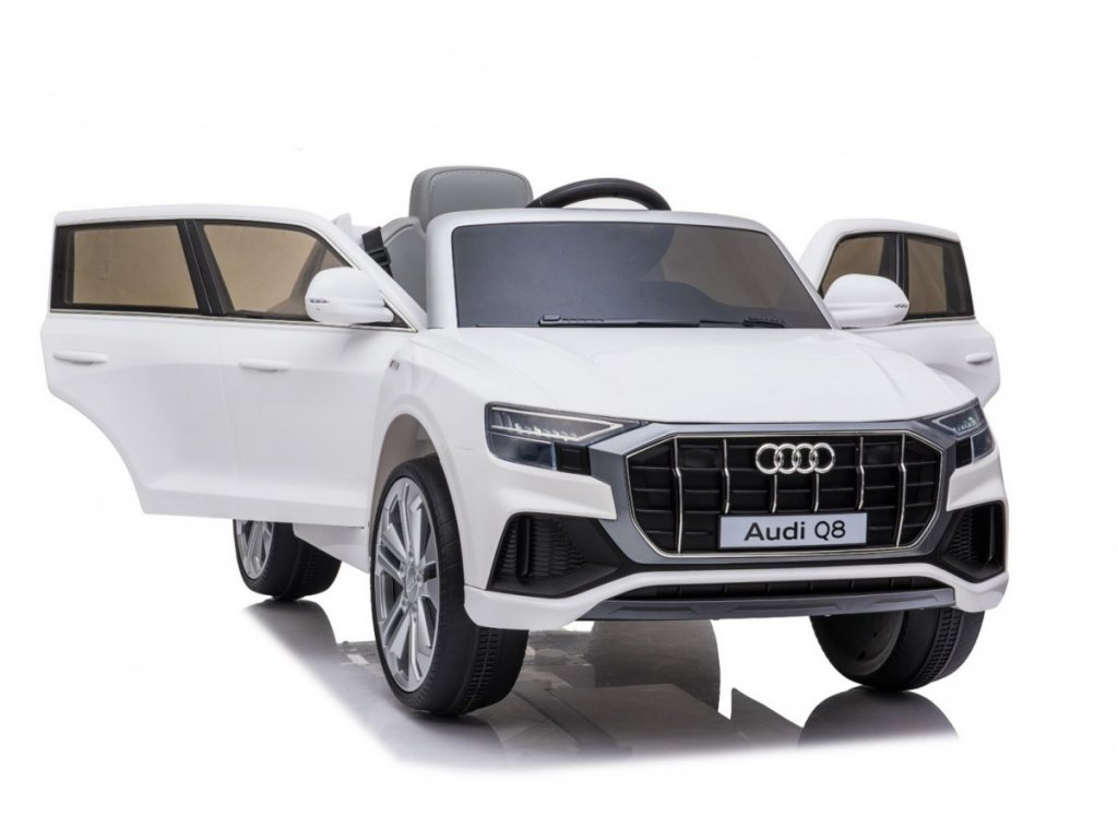 Detské elektrické autíčko Audi Q8 si Vaše dieťa zamiluje. Toto krásne elektrické autíčko sa rozhodne má čím pochváliť. Okrem krásneho designu má aj bohatú výbavu a užitočné funkcie. Za zmienku určite stojí funkcia voľného štartu a bezpečnostné tlačidlo STOP. Vo výbave autíčko zase ponúka kolesá EVA , ktoré nie sú hlučné a spríjemňujú riadenie. Na to zvládajú rôzne typy povrchov. Ďalej pohodlné sedadlo z eko kože, LED osvetlenie, otvárateľné dvere, tlmiče a hudobný panel. Vozidlo je možné tiež ovládať na diaľku vďaka ovládaču, a preto máte neustálu kontrolu nad dieťaťom. Autíčko je vhodné pre deti od 3 rokov.
