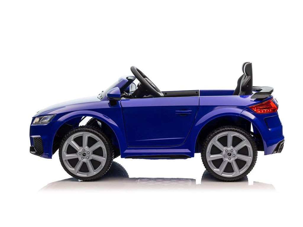 Elektrické autíčko Audi TT RS Roadster má dva motory s výkonom 45W. Autíčko je vybavené batériou s kapacitou 12V 7Ah a má nosnosť 30 kg . Sedadlo je potiahnuté ekologickú kožu a má bezpečnostný pás. Výhodou autíčka sú funkčné predné a zadné LED svetlá.