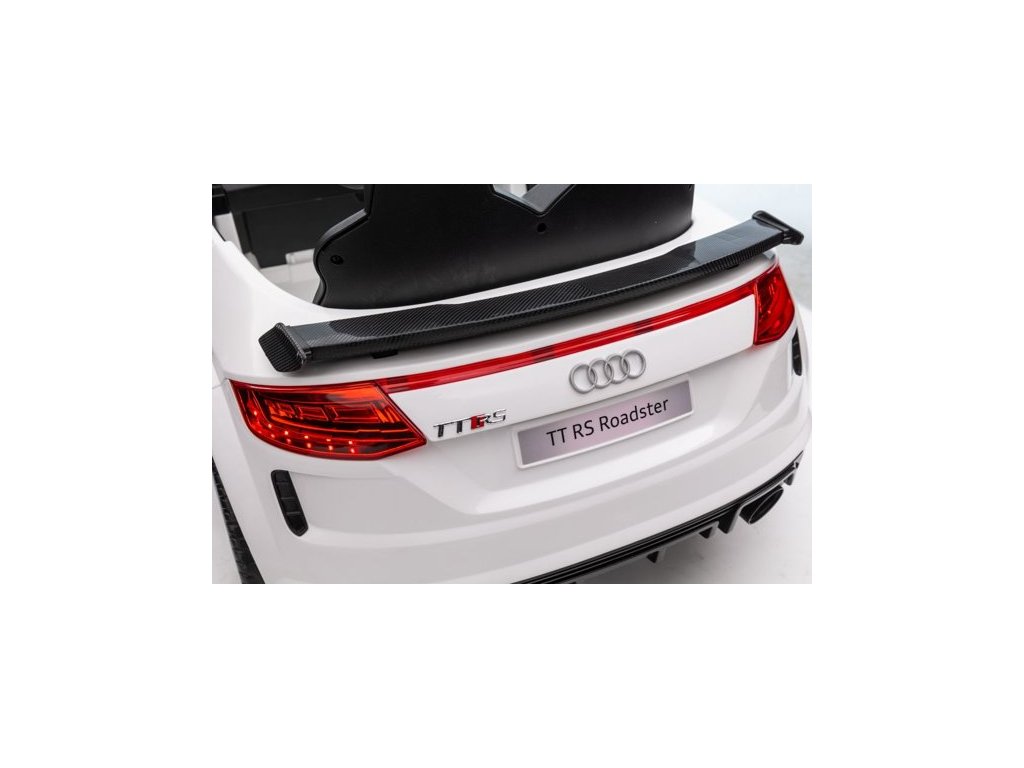Elektrické autíčko Audi TT RS Roadster má dva motory s výkonom 45W. Autíčko je vybavené batériou s kapacitou 12V 7Ah a má nosnosť 30 kg . Sedadlo je potiahnuté ekologickú kožu a má bezpečnostný pás. Výhodou autíčka sú funkčné predné a zadné LED svetlá.