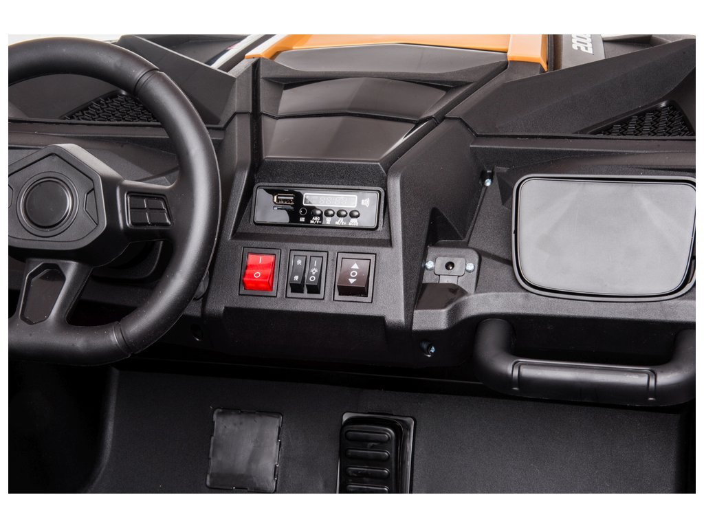 Dětské elektrické auto Buggy UTV se čtyřmi výkonnými elektrickými motory 200W. Autíčko hravě zvládne jakýkoliv terén. Do sedačky se pohodlně posadí i dvě děti, jelikož se autíčko pyšní nosností až 60 kg.