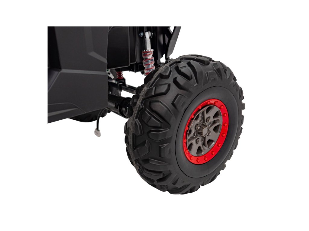 Detské autíčko Buggy UTV-MX 2000N prichádza na mäkkých penových EVA kolesách, ktoré sú tiché a prispôsobia sa rôznym typom terénu. Dieťa sa posadí do pohodlne tvarovanej sedačky z ekologickej kože ao bezpečnosť sa postarajú bezpečnostné pásy.