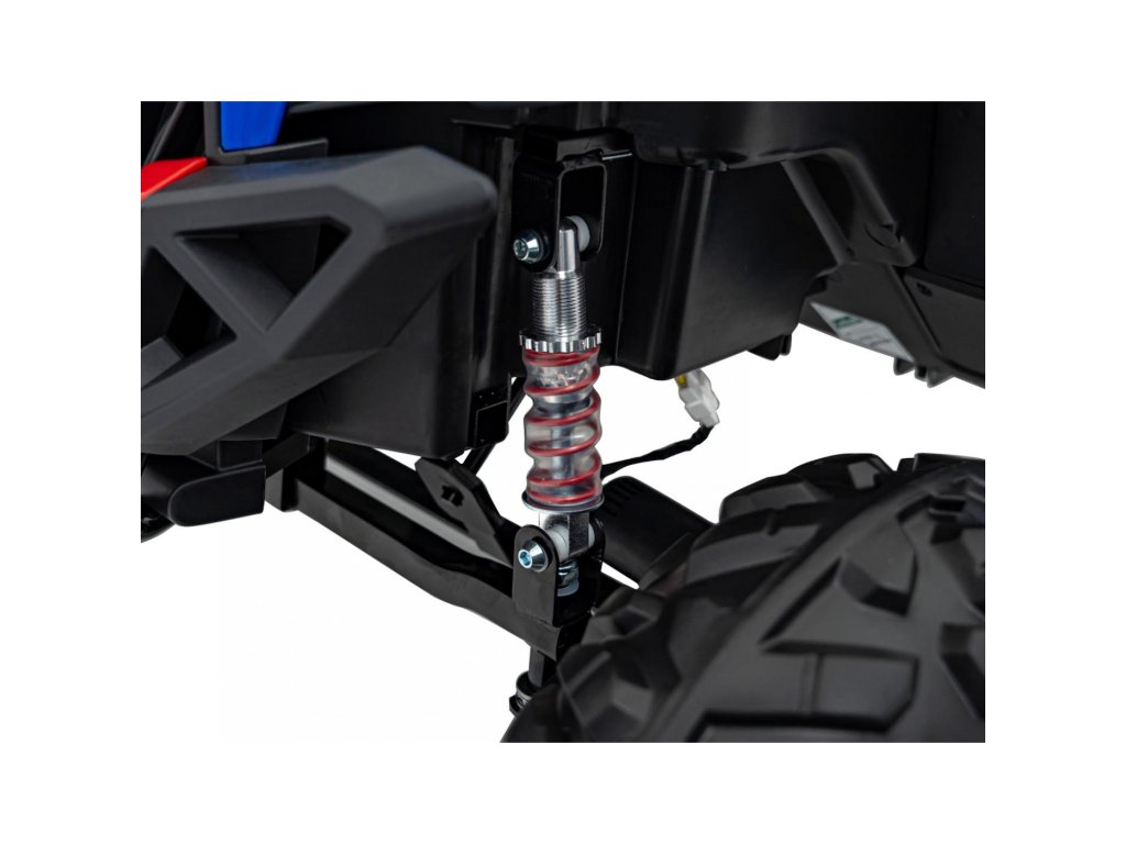 Detské autíčko Buggy UTV-MX 2000N prichádza na mäkkých penových EVA kolesách, ktoré sú tiché a prispôsobia sa rôznym typom terénu. Dieťa sa posadí do pohodlne tvarovanej sedačky z ekologickej kože ao bezpečnosť sa postarajú bezpečnostné pásy.