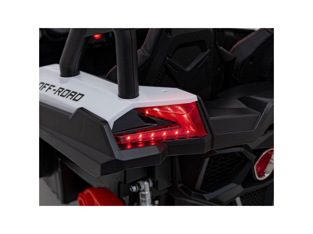 Elektrické autíčko Buggy UTV so silnými motormi s celkovým výkonom 800W nesmie chýbať v žiadnej detskej garáži. Autíčko je poháňané batériou s kapacitou 24V 9Ah . Maximálne zaťaženie vozítka je 60 kg. Počas jazdy dieťa určite zaujme hudobný panel s MP3, Bluetooth a USB .