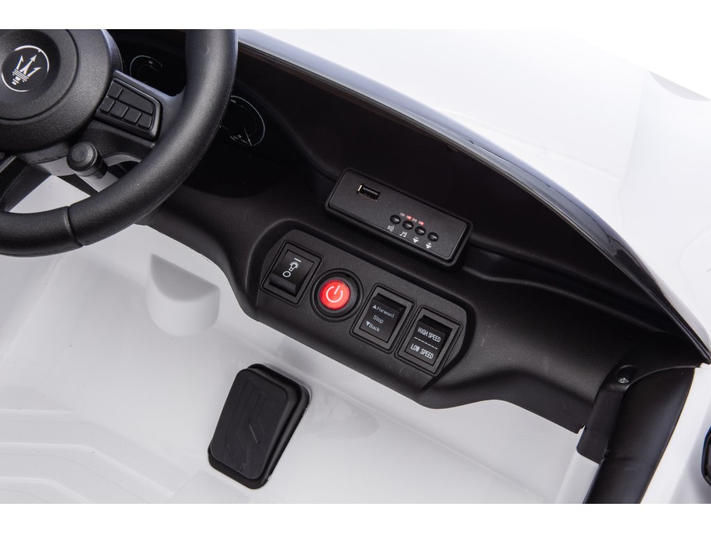 Elektrické autíčko Maserati GranTurismo Folgore 2 je vybavené štyrmi motormi s výkonom 200W a batériou s kapacitou 24V 7Ah. Autíčko má predné a zadné LED svetlá. Vozidlo má hudobný panel s USB, Bluetooth a FM rádiom.