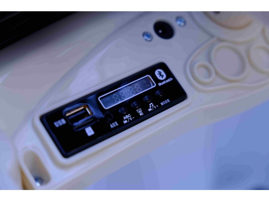 Medzi vybavenie autíčka patria predné aj zadné LED svetlá, hudobný panel so vstupom USB, SD, MP3 a Bluetooth.