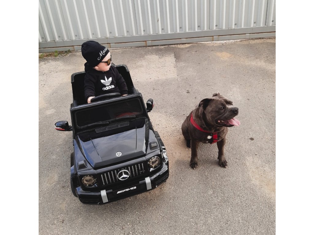 Čierny, lakovaný Mercedes G63 AMG je skutočnou kombináciou spoľahlivosti, špičkovej kvality a vojenského designu. Toto vozidlo bude fungovať ako pri každodenných jazdách na statku, tak počas víkendových výletov mimo mesta. Dva 45W motory pod kapotou, v kombinácii s 12V4.5Ah batériou, umožňujú jazdu rýchlosťou 3 až 5 km/h, čo iste nielen zapôsobí na malého vodiča, ale aj okoloidúcich.