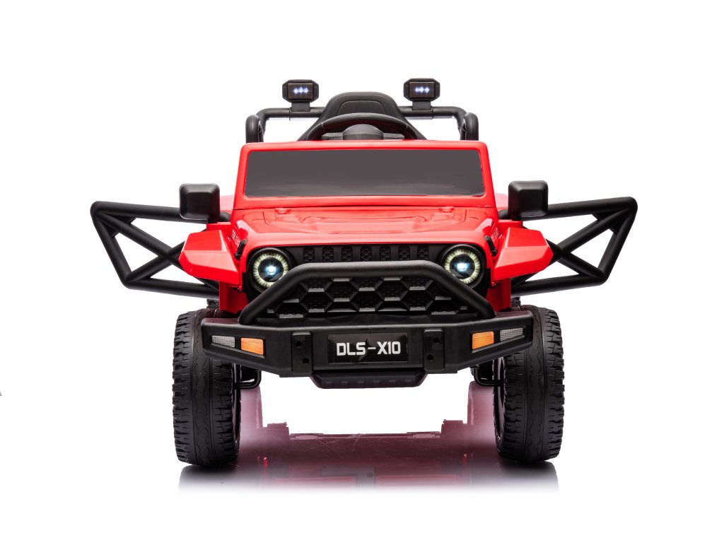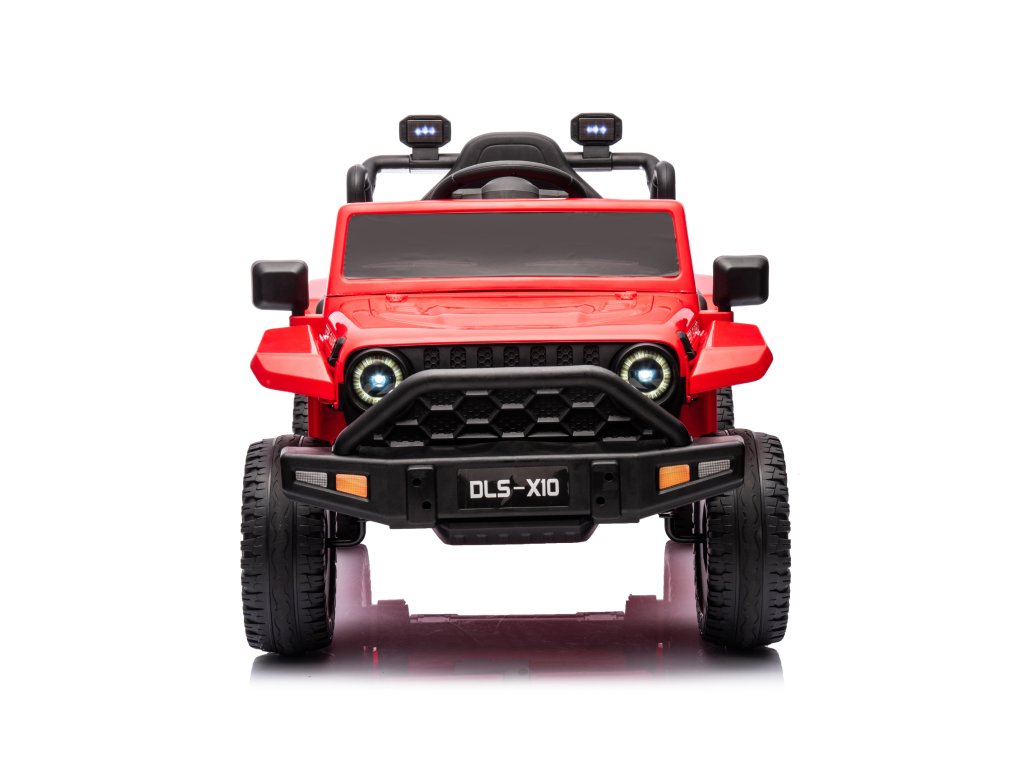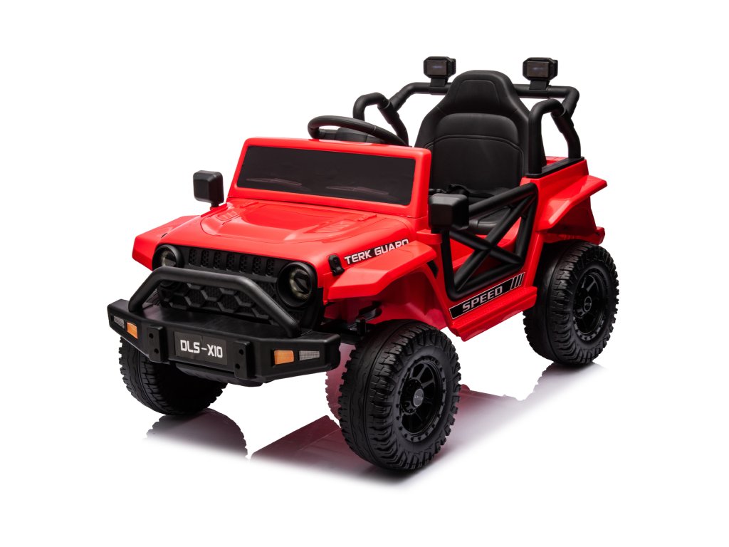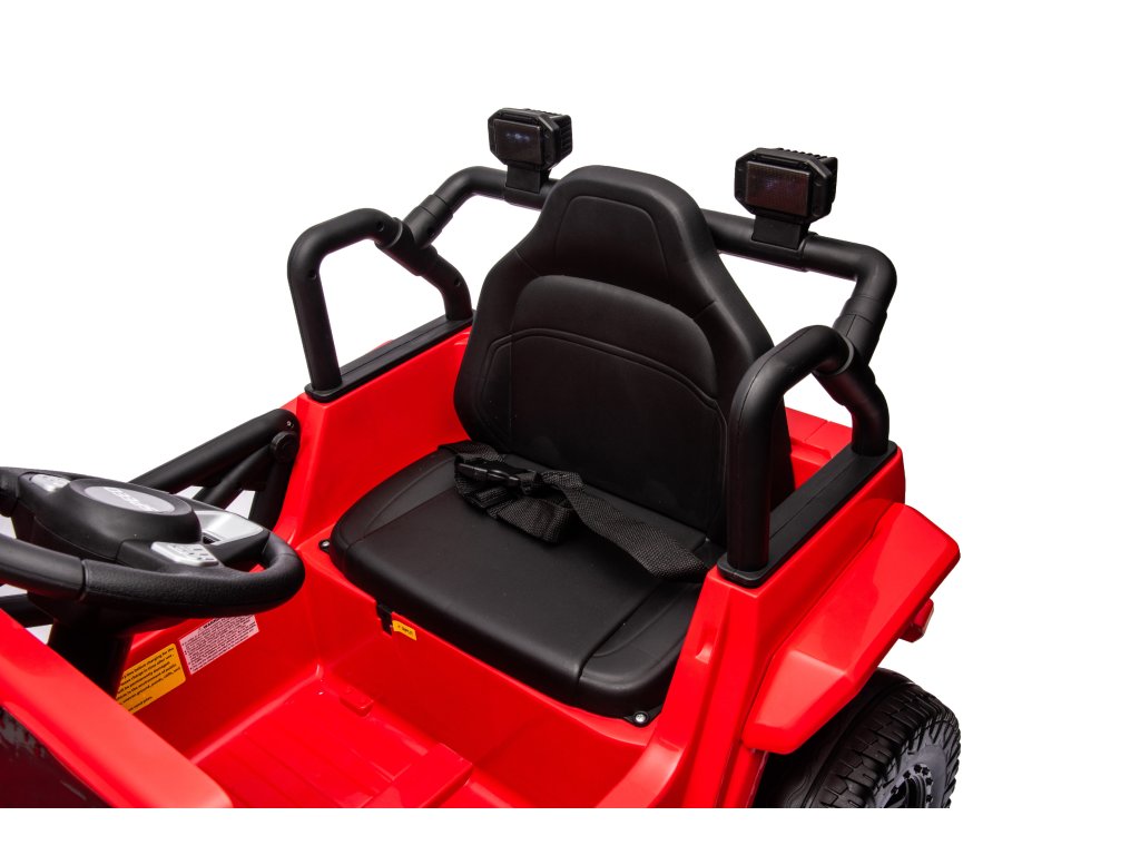 Elektrické autíčko OFFROAD červené 12V Vysoký podvozok, široké sedadlo, Odpružené nápravy, 2,4 GHz Diaľkové ovládanie LED svetlá