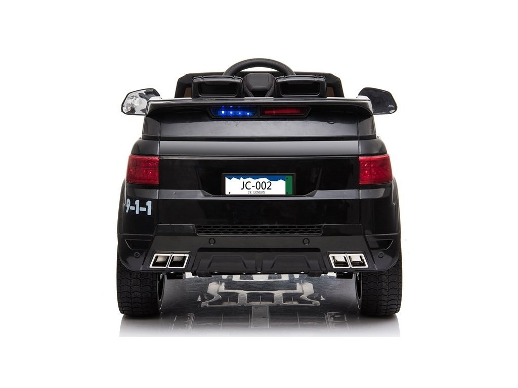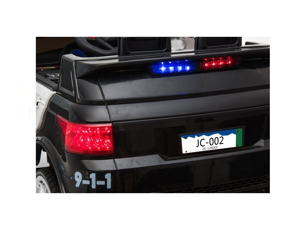 Detské elektrické autíčko Polícia s inovatívnym diaľkovým ovládaním určeným pre rodičov. Elektrické a utíčko má pohodlnú sedačku a pre bezpečnosť dieťaťa je na sedačke umiestnený bezpečnostný pás. Autíčko je vybavené palubnou doskou, volantom, svietiacimi prednými svetlami a panelom audio. Vozidlo je možné ovládať dvoma spôsobmi, buď pomocou diaľkového ovládača, ktorý je určený pre rodičov, kedy rodič sám volí smer a rýchlosť jazdy alebo dieťa môže riadiť autíčko celkom samostatne. Kolesá elektrického autíčka sú mäkká penová a umožňujú tak plynulú a príjemnú jazdu.