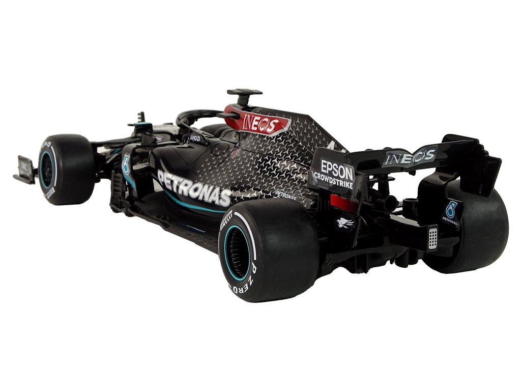 Formula na diaľkové ovládanie Mercedes F1 upúta pozornosť svojim čiernym prevedením, ktoré vystihuje charakteristický vzhľad vozidla Mercedes. Autíčko je vyrobené v mierke 1:18. Diaľkové ovládanie pracuje na frekvencii 27/40 MHz . Pomocou diaľkového ovládača môžeme ovládať jazdu autíčka všetkými smermi, čo znamená vpred, vzad, doľava a doprava.