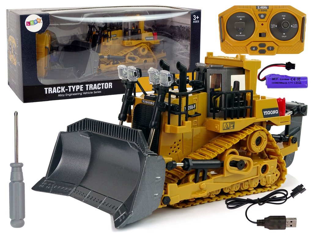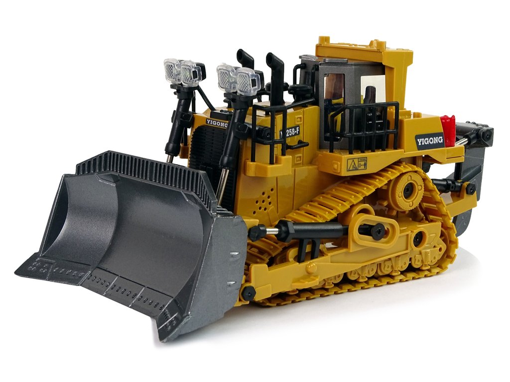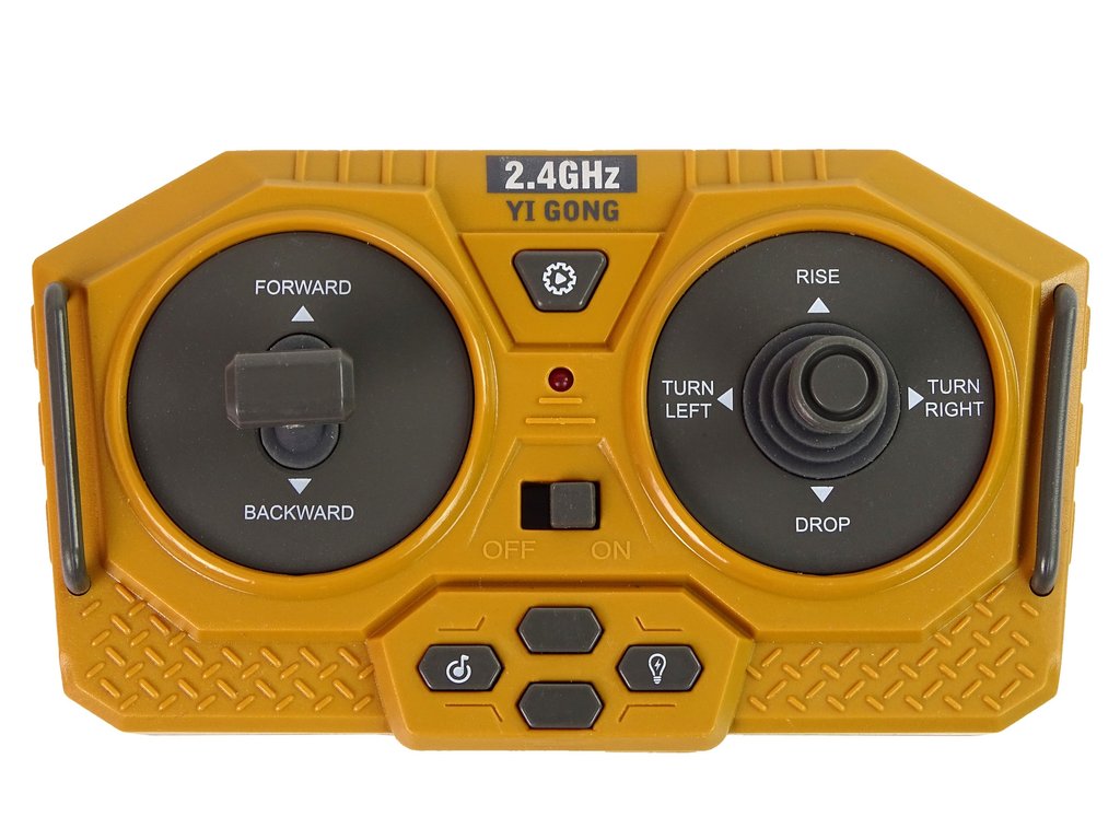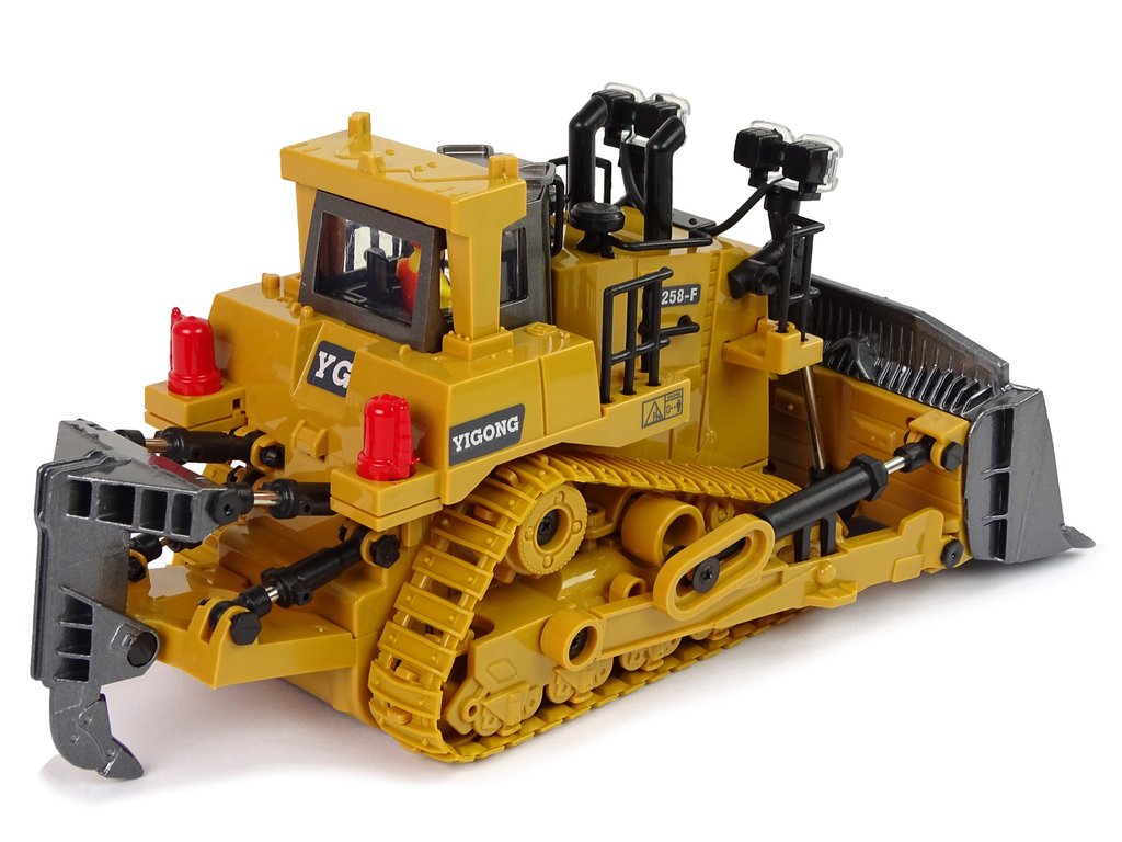 Diaľkovo ovládaný nákladný automobil je realisticky stvárnený model. Žltý buldozér je zdobený čiernymi detailmi a tiež charakteristickými nálepkami. Ovládač má frekvenciu 2.4 Ghz a nákladné vozidlo je vyrobené v mierke 1:20. Ovládanie ovládača R/C je veľmi jednoduché, dva joysticky umožňujú pohodlné manévrovanie. S jeho pomocou môže operátor nákladného vozidla ovládať, meniť smer jazdy vpred/dozadu a doprava/doľava, upravovať hlasitosť a predovšetkým pohybovať lyžicou.