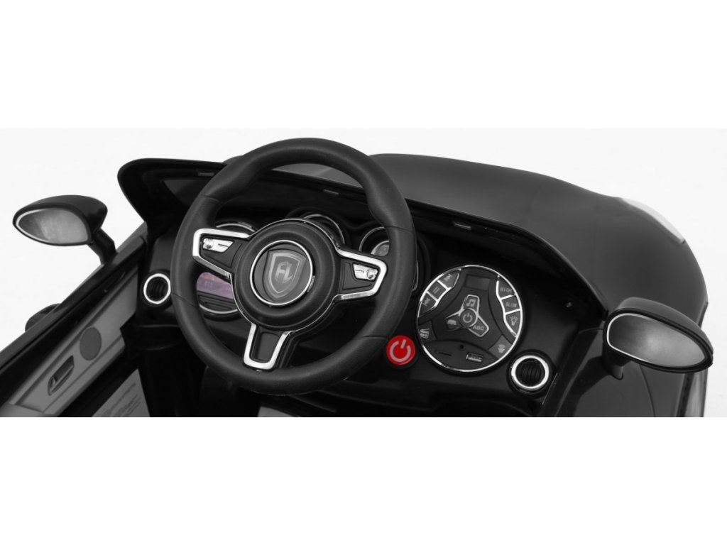 Detské elektrické autíčko Turbo-S v čiernej farbe. Elektrické autíčko je vybavené svietiacimi prednými a zadnými svetlami. Obsahuje prípojku pre MP3, SD kartu a USB. Pre bezpečnosť dieťaťa je na sedačke umiestnený bezpečnostný pás. Ak sa chcete vydať na jazdu, stačí sa len pohodlne usadiť v elektrickom autíčku, a potom stlačiť tlačidlo START. V sade sa nachádza aj diaľkové ovládanie pre rodičov, ktoré využijete, keď dieťa ešte nezvláda riadenie autíčka samo.