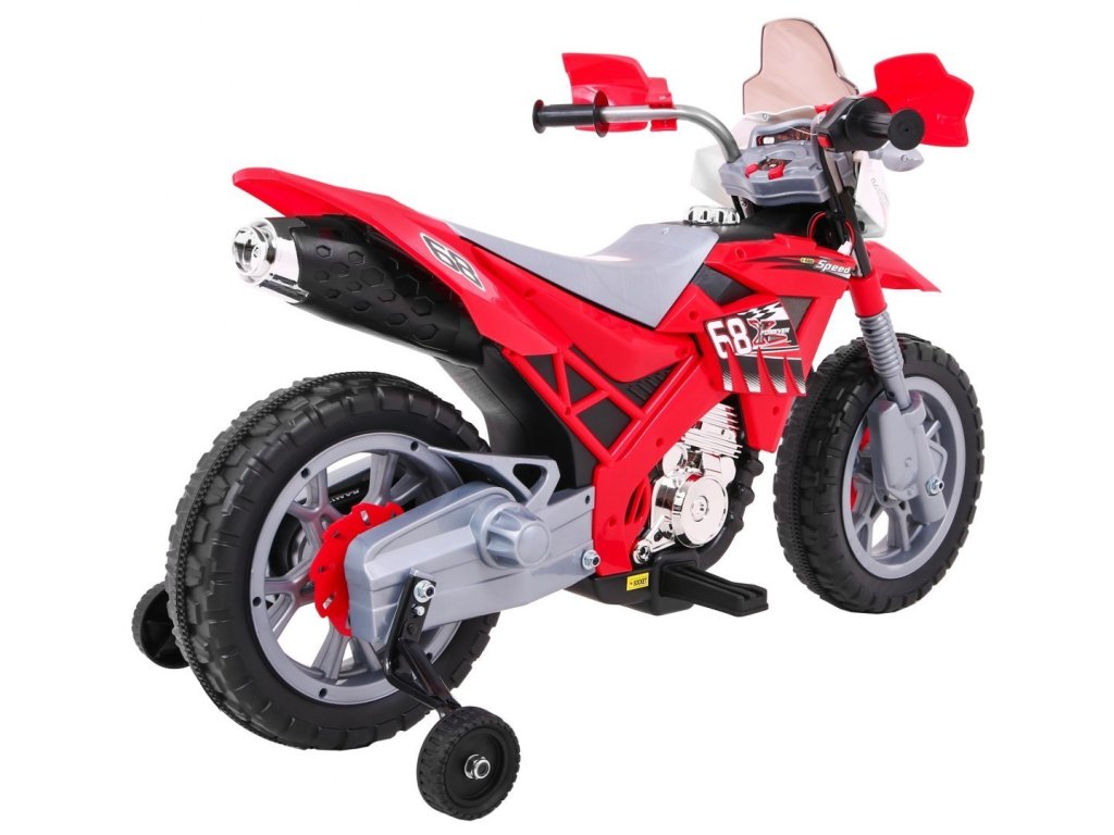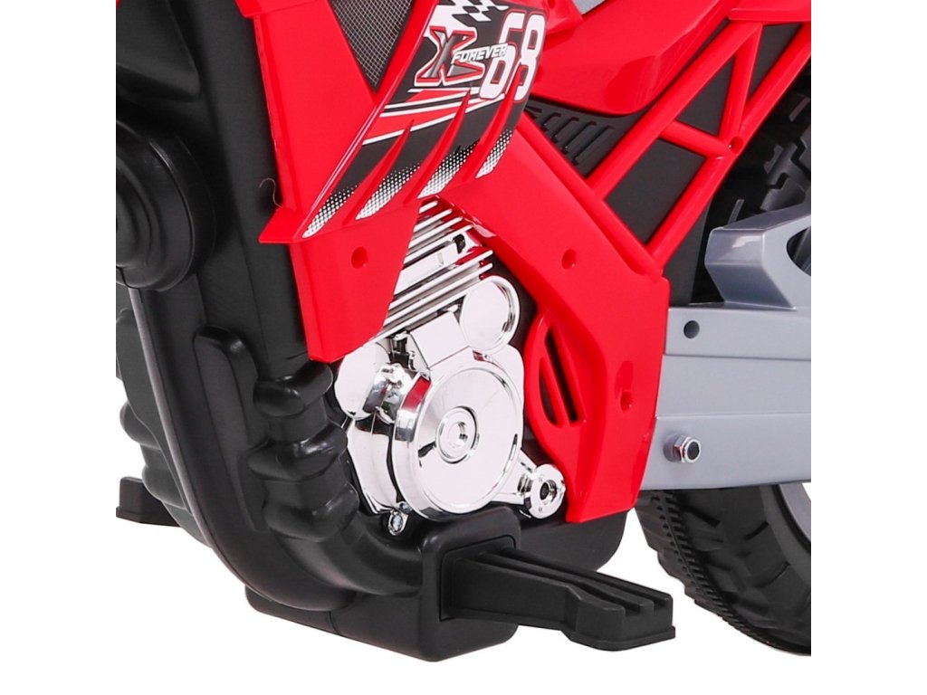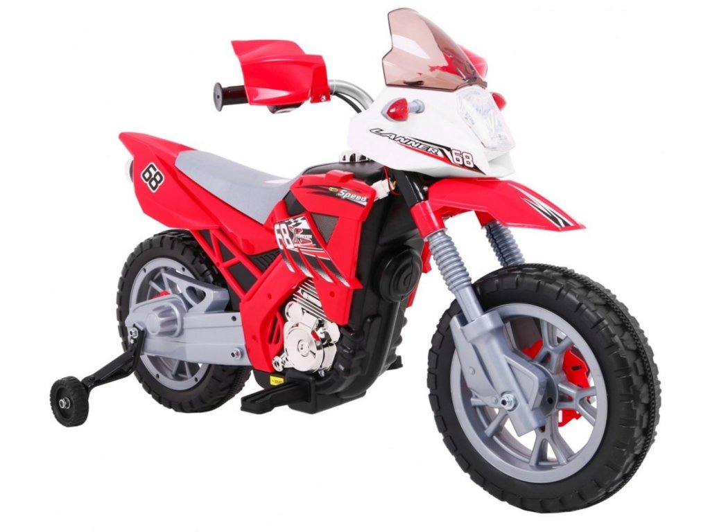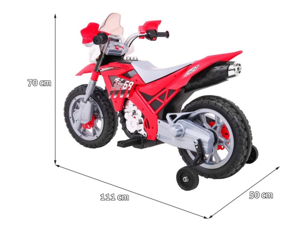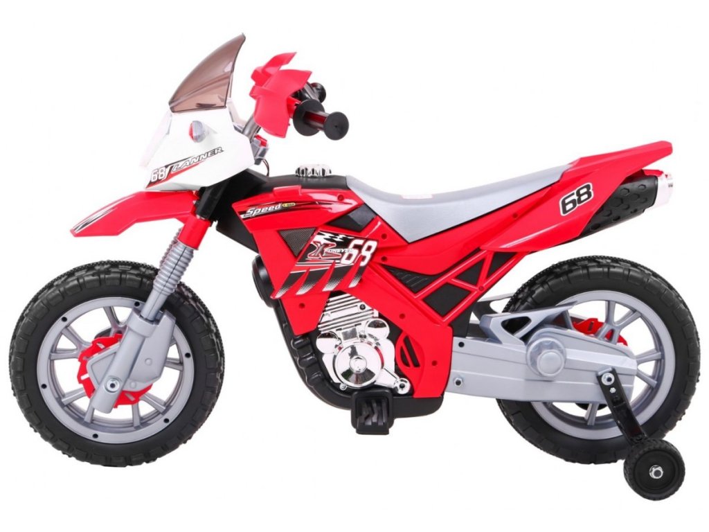 Detská motorka Cross. Tahle Cross motorka nadchne ako deti, tak aj rodičia a všetkých nadšencov jednostopových rýchlych strojov. Motorka má prepínač na smer jazdy vpred / vzad, predné LED svetlá, ktoré svietia za jazdy a pohodlné, ergonomicky tvarované sedadlo. Súčasťou sú aj odnímateľná bočné kolieska. Motorke svietia LED svetlá. Výrobok má európsky certifikát bezpečnosti CE.