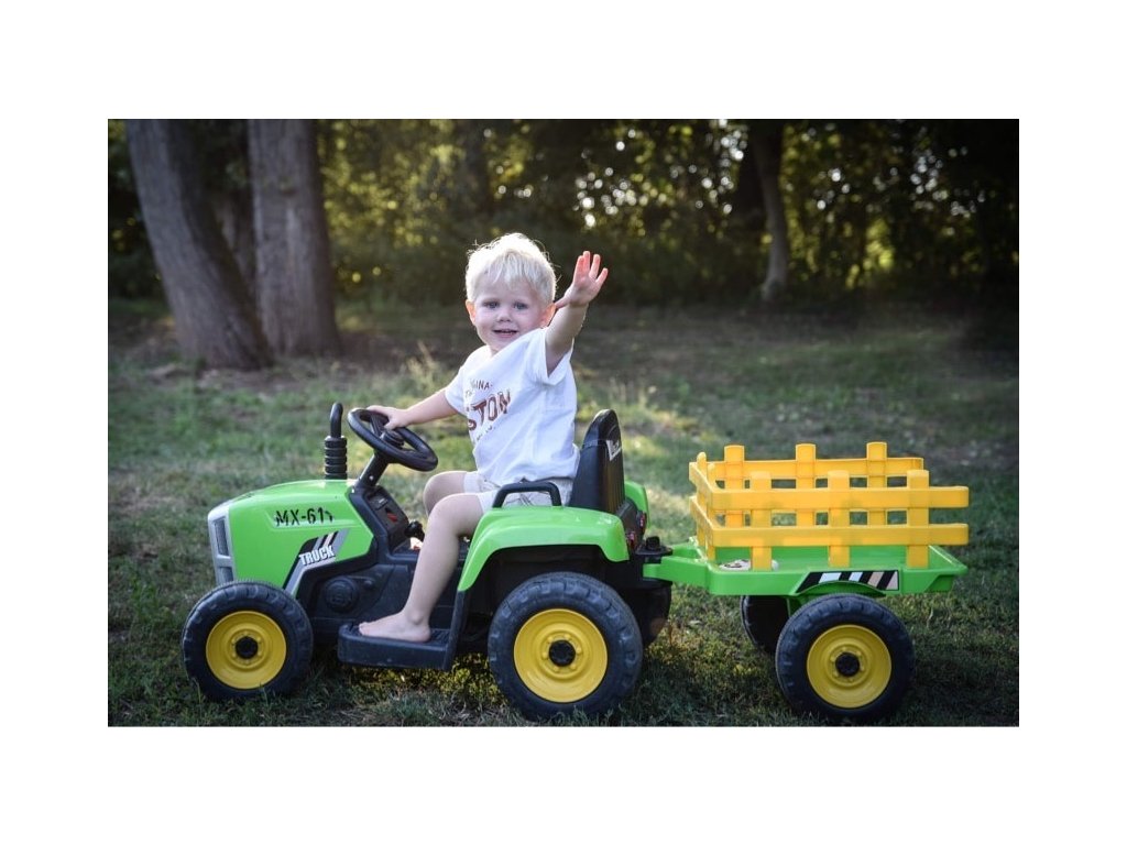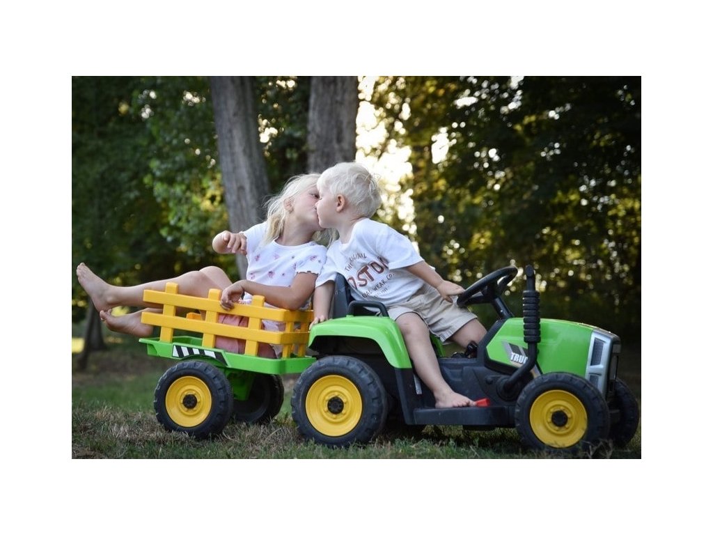 Detský elektrický traktor s dvoma elektrickými motormi, ktoré zaisťujú náhon oboch zadných kolies, je vhodný aj pre jazdu v teréne. S jazdou si poradí aj tí najmenší. Traktor je veľký, silný a vyrobený z najkvalitnejšieho plastového materiálu v modernom štýle, uspokojí chute najmladších motoristických nadšencov. Hračka doporučená výrobcom od 3 rokov a má certifikát CE.
