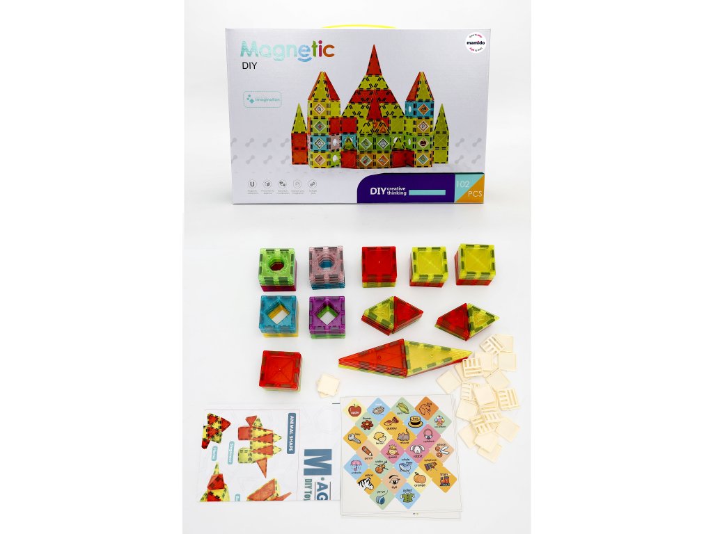 Kreatívna magnetická stavebnica sa skladá zo 102 farebných dlaždíc o veľkosti 5,5 cm, čo je skvelá voľba pre deti, ktoré milujú stavanie, svetelné efekty a kombinovanie tvarov. Menšia veľkosť dielikov je ideálna pre detailné stavby, pevné konštrukcie aj tvorenie menších hradov, domčekov a veží. Priehľadné farebné okenné dieliky vytvárajú krásne farebné odlesky a vďaka silným magnetom vždy dobre držia.