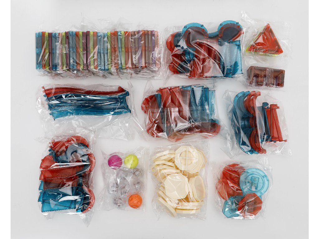 Magnetická stavebnica so 140 dielmi na tvorbu svetelných stavieb, veží, dráh pre guličky a interaktívnych konštrukcií. Diely sú priehľadné, farebné a vďaka silným magnetom perfektne držia pokope. Sada obsahuje aj prvky guľôčkovej dráhy ako sú rampy, výjazdy, oblúky, guľôčky s LED prvkami vo vnútri (svetelný efekt) a tiež sadu nálepiek s písmenami, číslami a obrázkami – deti tak môžu stavať nielen dráhy, ale aj učenie formou hry.