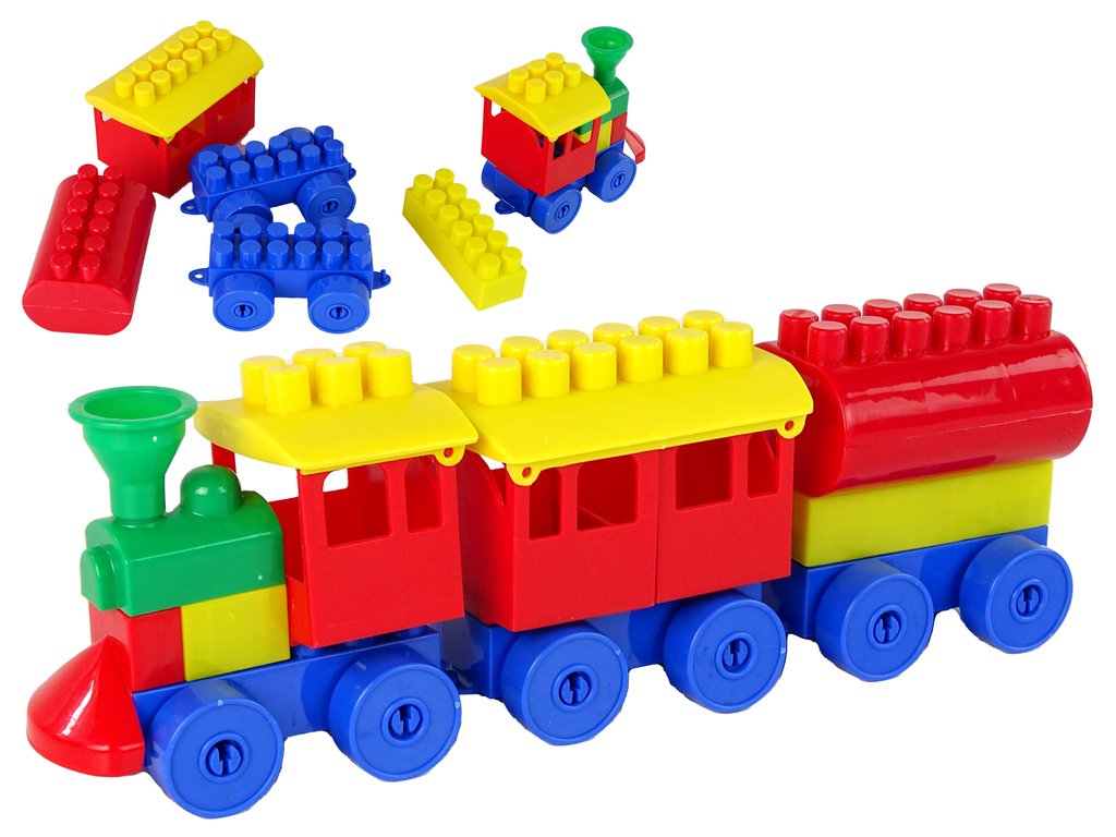 Predstavujeme farebný vláčik pre najmenšie deti. Do tohto vlaku sa zmestia kocky K2 od spoločnosti HEMAR a pri hre sa spájajú.