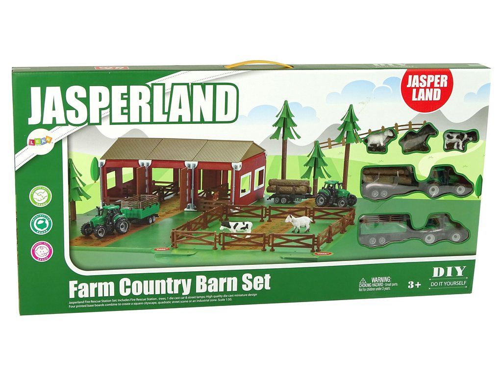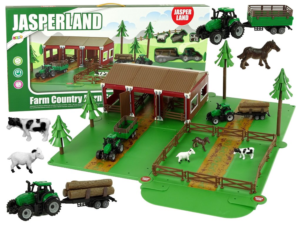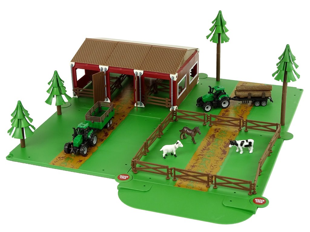 Celá farma má všetky prvky potrebné na prácu. Na farme sú dva traktory s prívesmi, jeden špeciálny na prepravu dreva. V zadnej časti je stodola, kde zvieratá, ktoré sú súčasťou balenia, trávia noc. S touto stavebnicou máte všetky prvky pre stavbu farmy s ohradou, stodolou a stromami. Pri aranžovaní dieťa cvičí presnosť a manuálne zručnosti, predstavivosť, pamäť a zlepšuje koncentráciu. Nechajte svoje dieťa naučiť sa všetky povinnosti poľnohospodárov počas skvelej farmárskej hry, povzbudzujte svoje dieťa na vytváranie dobrodružstva vo vidieckom prostredí.