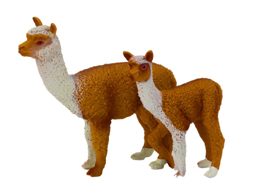 Tento roztomilý pár lám – matka a jej mláďa – je symbolom lásky, starostlivosti a rodinného tepla. Figúrka dokonale zachytáva prirodzenú krásu týchto výnimočných zvierat, zdôrazňujúc ich charakteristické rysy a jemnosť. Dospelá lama s výškou 8 cm stojí hrdo, zatiaľ čo mladá lama, merajúca 6 cm, zvedavo sleduje svet, čím spolu tvorí harmonickú a živú kompozíciu.