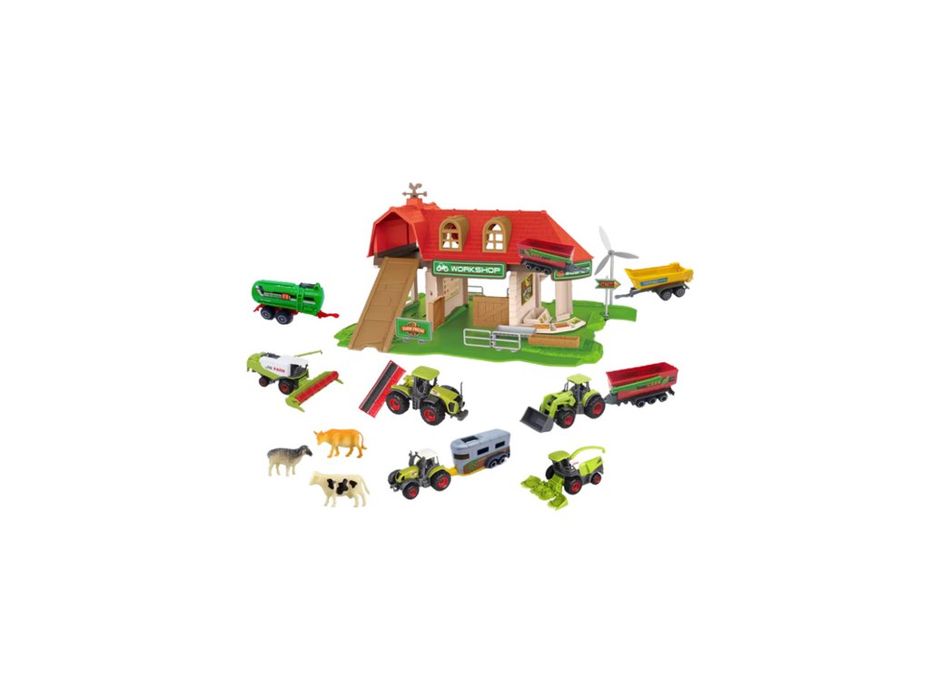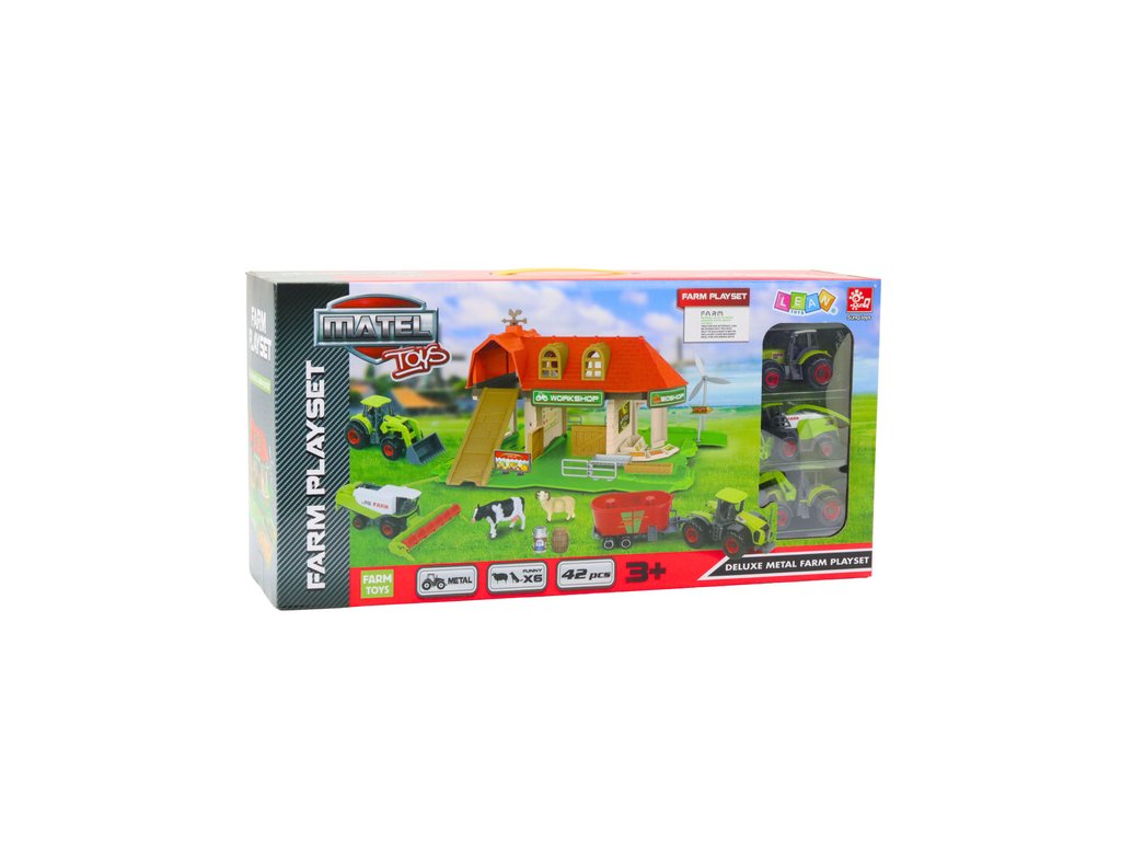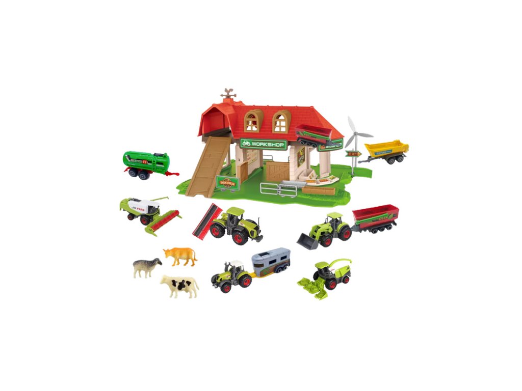 Vytvorte si vlastný svet farmy s touto detailne prepracovanou súpravou, ktorá deťom umožní objavovať život na vidieku a vžiť sa do role skutočného farmára. Súprava obsahuje všetko, čo malý farmár potrebuje: stodolu, veterný mlyn, ploty, traktory s prívesmi a tiež hospodárske zvieratá, ako sú kravy, kone, ovce a kozy.