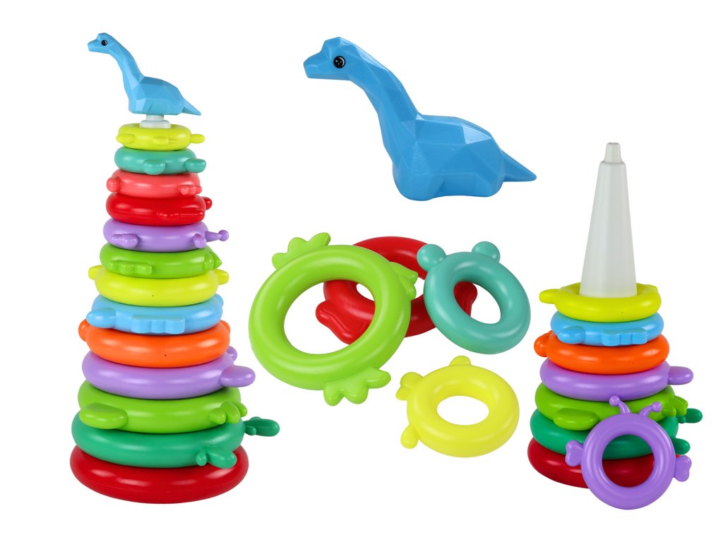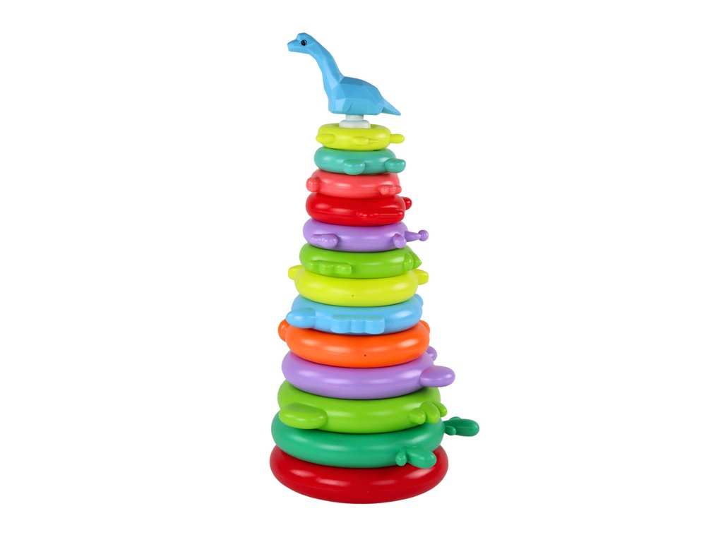 Girafí skladačka pyramídka 13 farebných kolies 43cm x 18cm x 18cm