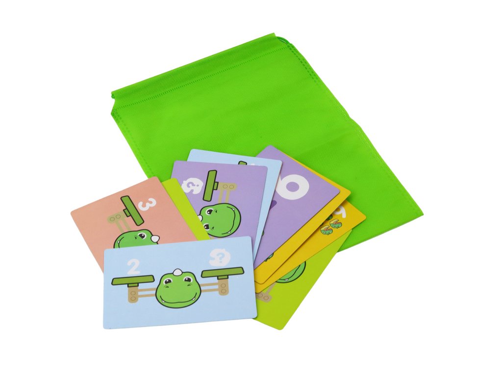 V súprave je tiež 10 závaží, ktoré symbolizujú rôzne počty dinosaurov. Vďaka nim sa deti môžu učiť matematiku príjemným spôsobom, spájajúcim hru s učením. Ďalej súprava obsahuje karty s matematickými úlohami a odpoveďami, ktoré môžu byť využité na ďalšie cvičenia a riešenie rovníc.