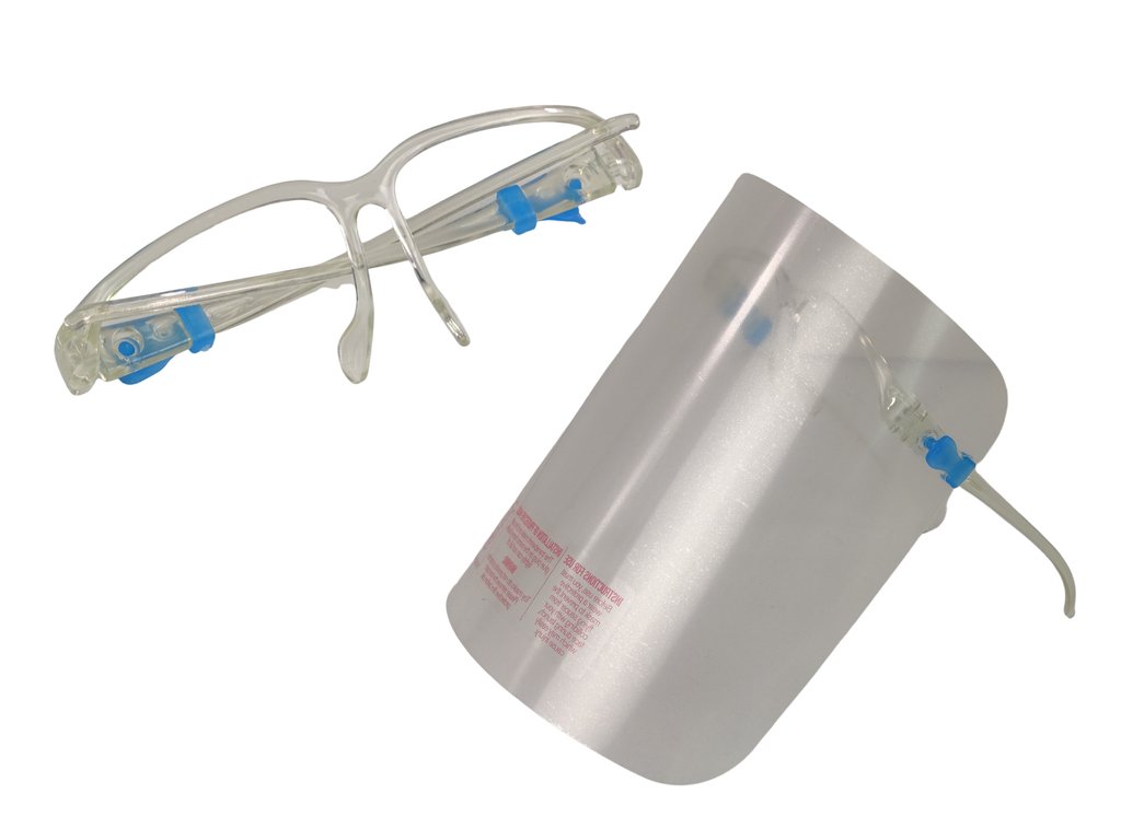 Dva páry okuliarov so špeciálnym štítkom chránia oči a tvár počas hry.
