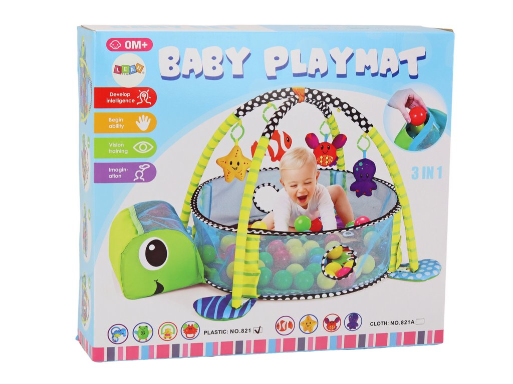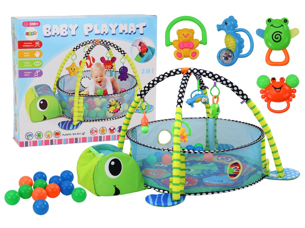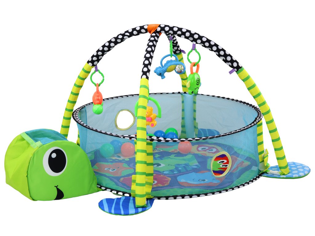 Hracia podložka a lehátko pre bábätko s loptičkami bazénik 3v1 Korytnačka