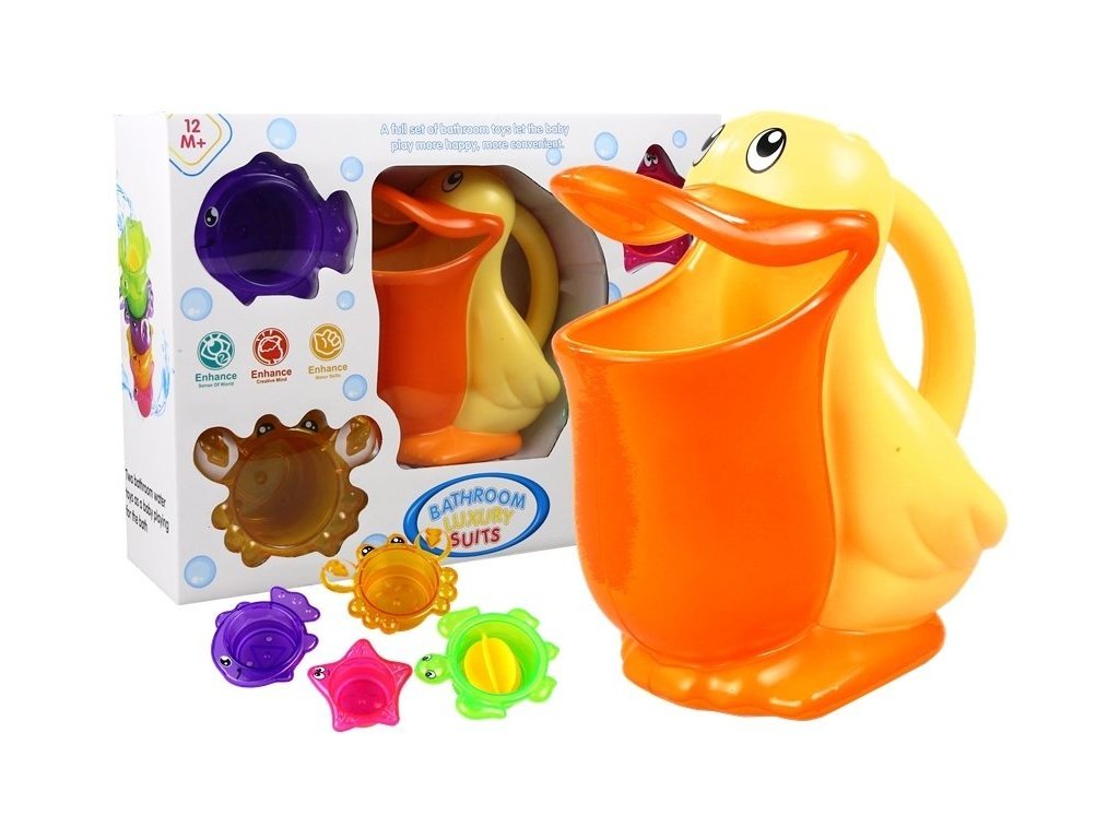 V balení nájdete: pelikána, rybku, hviezdičku, korytnačku a kraba, ktorí oživia hru vo vode. Pelikán môže slúžiť aj ako kanvička alebo váza.