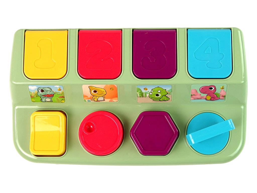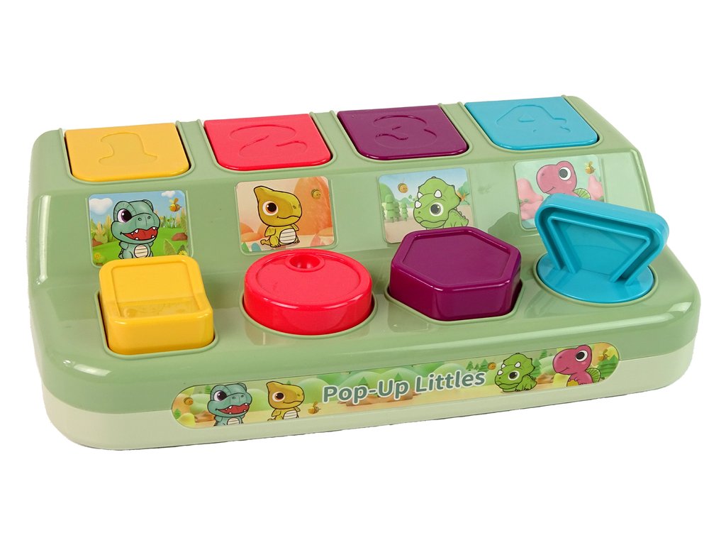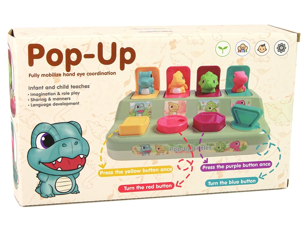 Zručnostná hračka Pop-Up s dinosaurami je skvelá zábava pre batoľatá, ktorá podporuje manuálne a vizuálne zručnosti. Po stlačení alebo otočení správneho tlačidla sa objavia farební dinosaury, čo deti bavia a zároveň ich učia rozpoznávať farby aj tvary. Hračka rozvíja detskú zručnosť, koordináciu a zvedavosť.